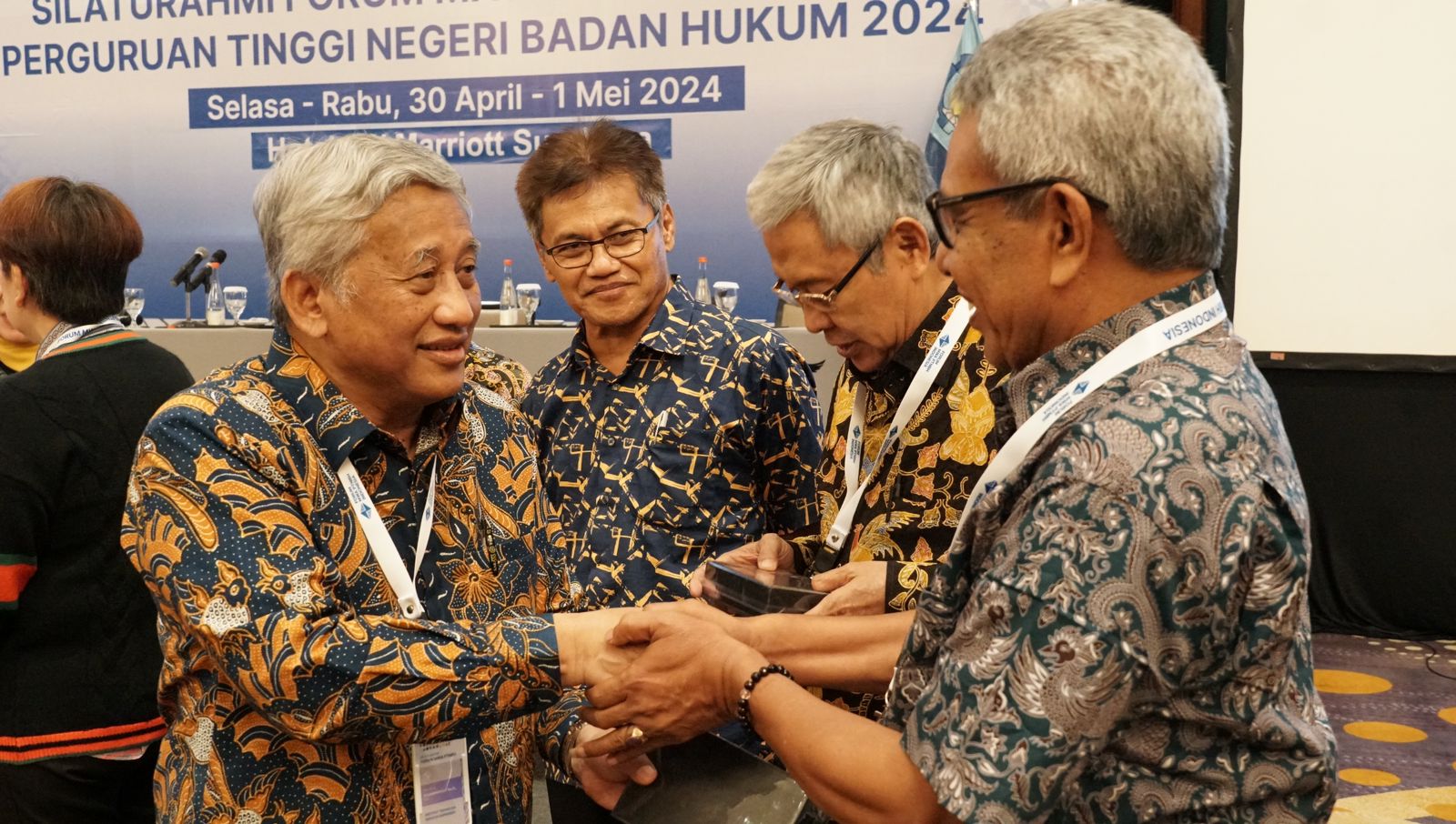 Kampus ITS, ITS News — Institut Teknologi Sepuluh Nopember (ITS) Surabaya menjadi tuan rumah Silaturahmi Nasional dari Forum Majelis Wali Amanat (MWA) Perguruan Tinggi Negeri Badan Hukum (PTN-BH) 2024. Kegiatan di Hotel JW Marriott Surabaya, Selasa (30/4) sore hingga malam, tersebut menjadi momentum dalam mengkritisi pembaharuan Rancangan Peraturan Pemerintah Republik Indonesia (RPP RI) tentang Penyelenggaraan Pendidikan Tinggi sekaligus serah terima jabatan dari Institut Teknologi Bandung (ITB) kepada ITS sebagai Ketua Forum MWA PTN-BH periode 2024 – 2025.