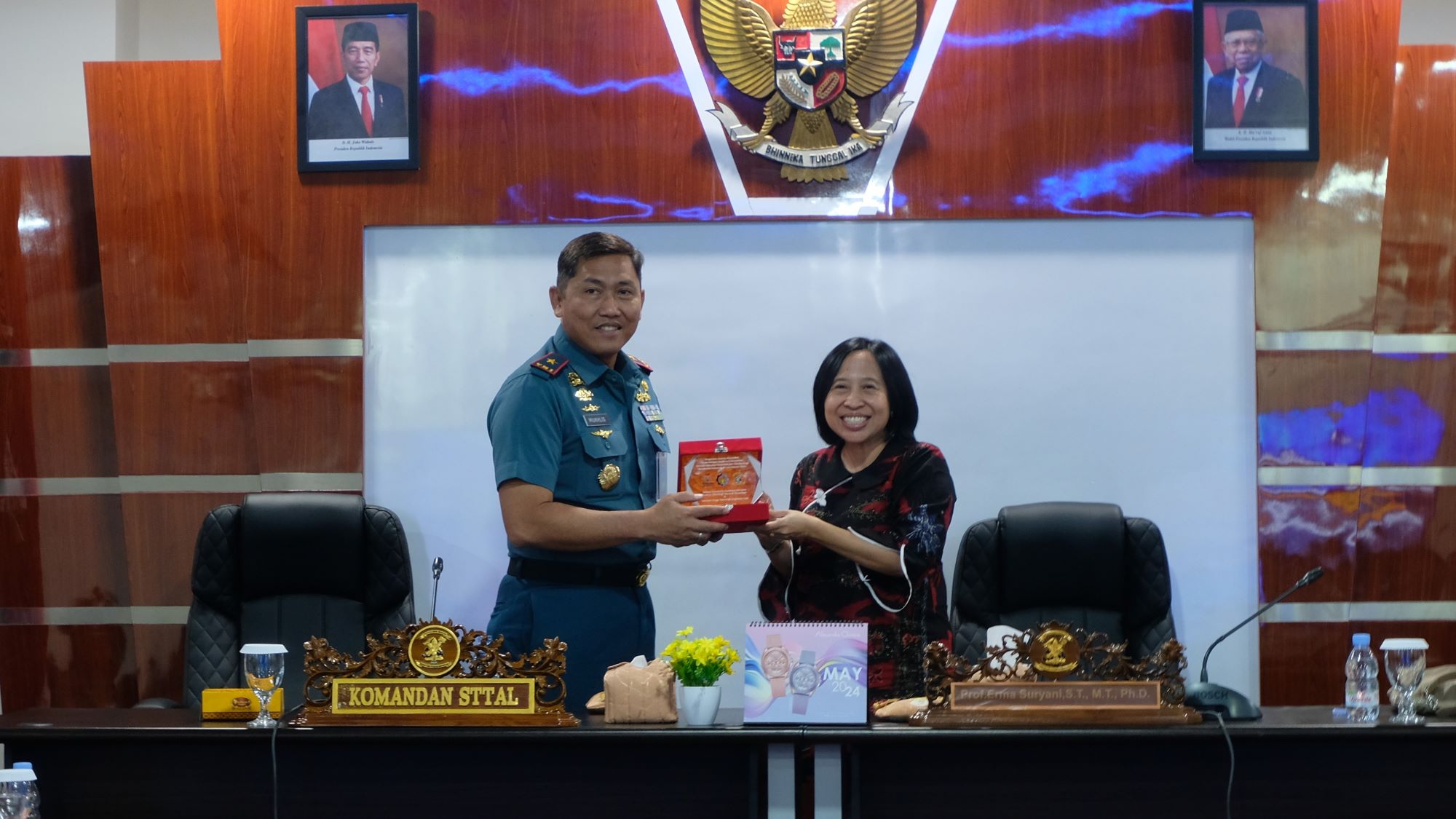Prof Erma Suryani ST MT PhD (kanan) saat sedang berbincang dengan Komandan STTAL, Laksamana Pertama TNI Dr Mukhlis ST MM (kiri)