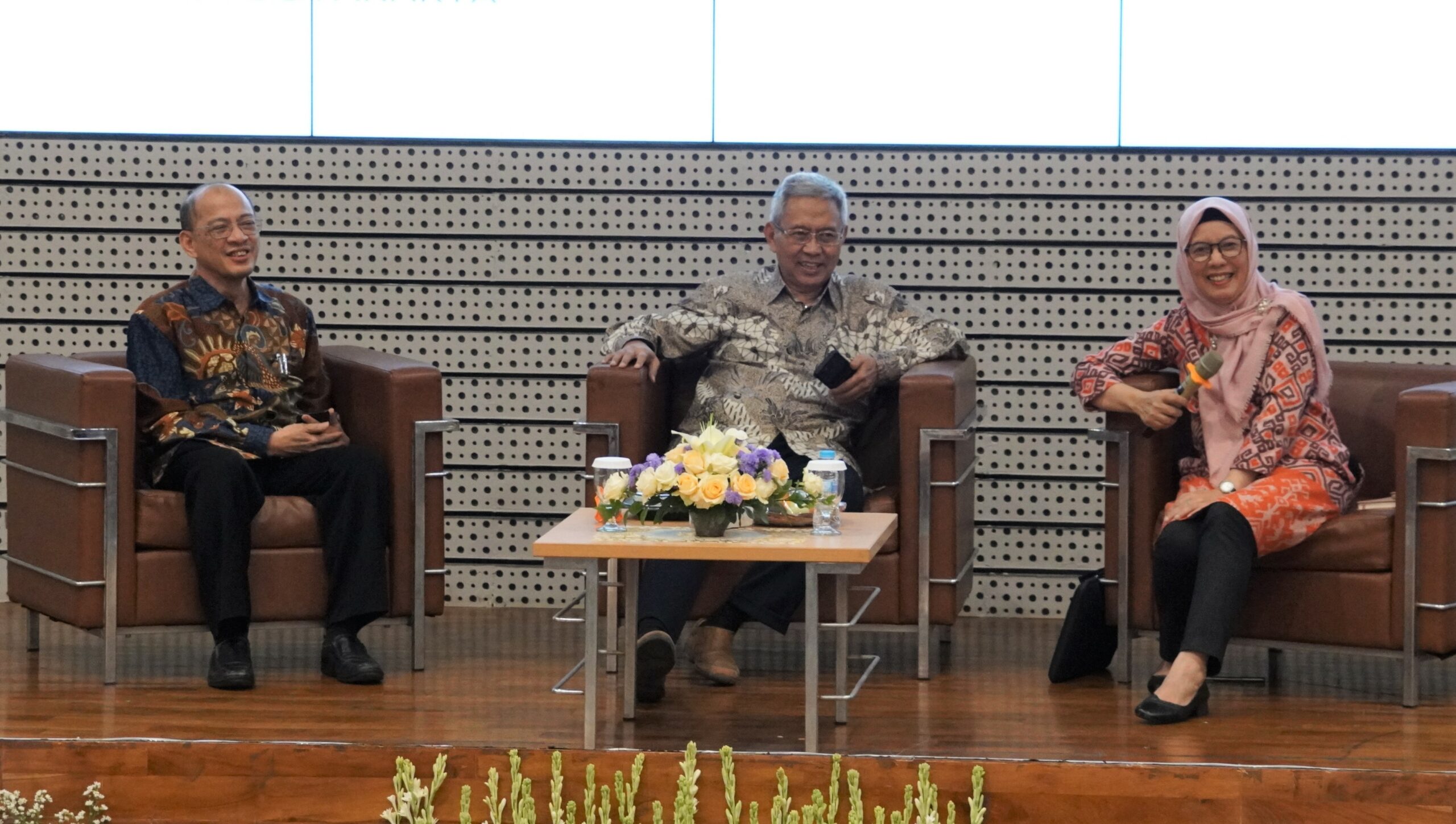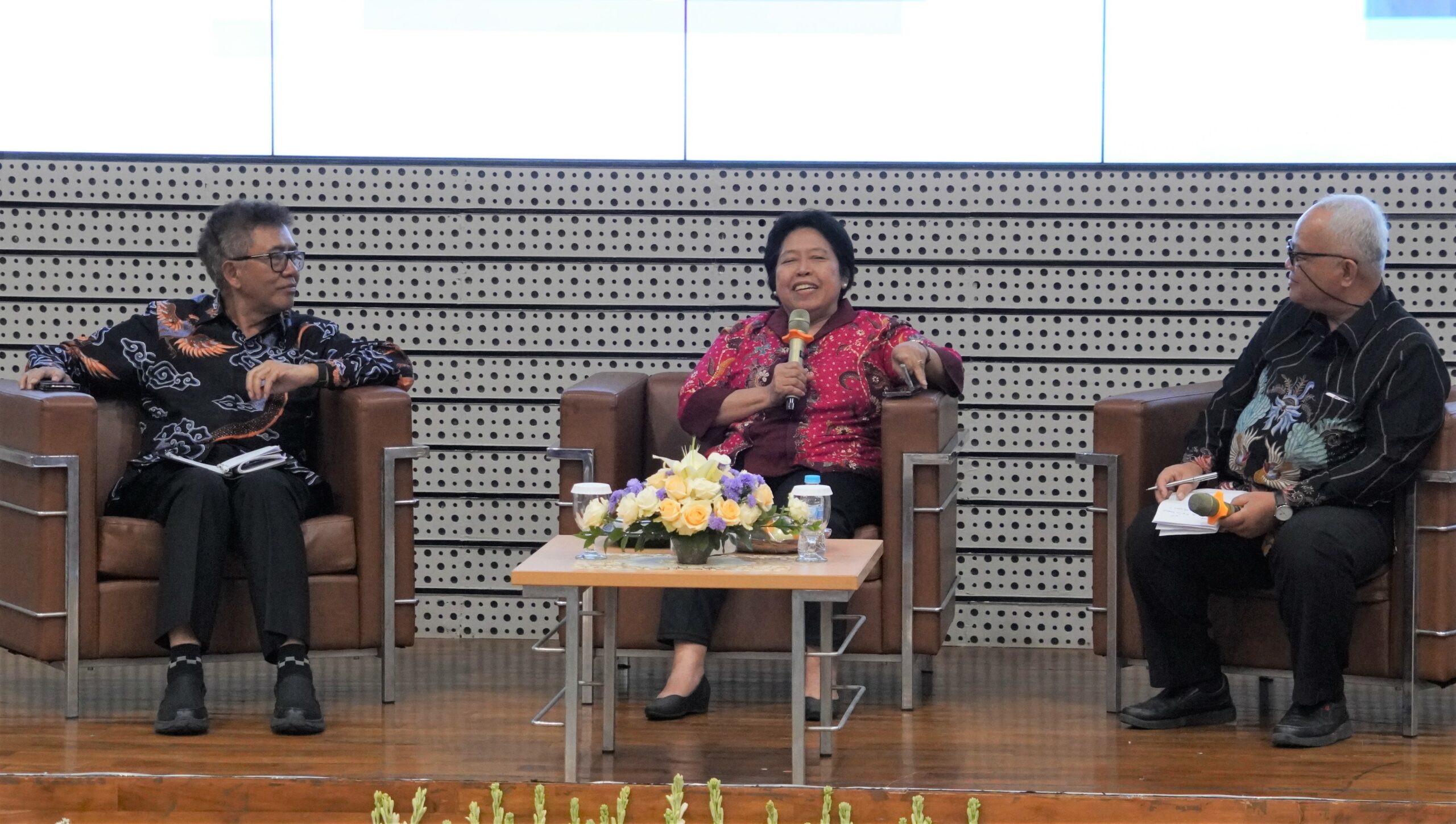 Narasumber sarasehan (dari kiri) Prof Ir Renanto MSc PhD, Prof Drs Suyanto MEd PhD, dan Prof Sri Gunani Partiwi MT sebagai moderator