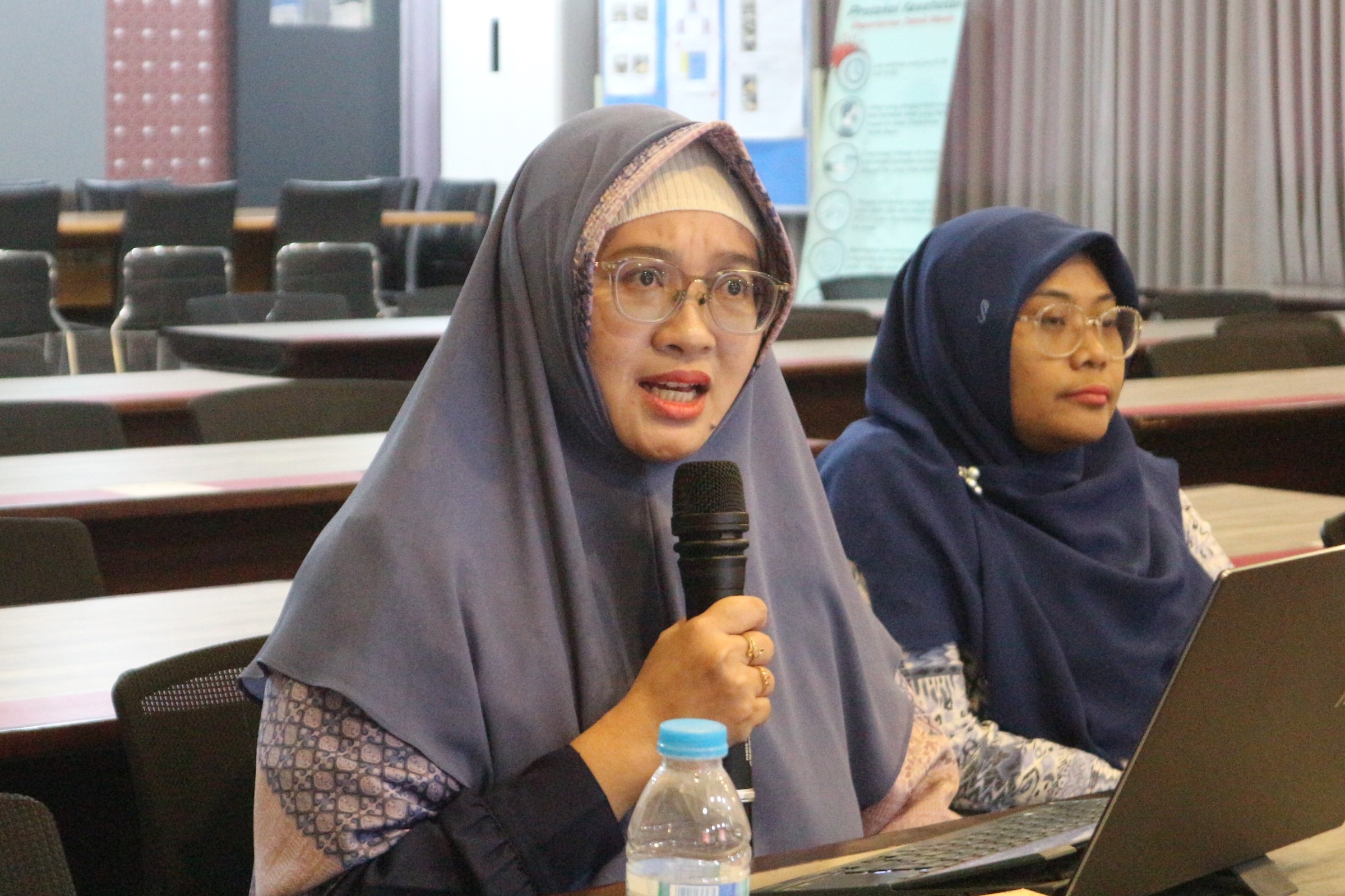 Salah satu mahasiswa program doktor Departemen Teknik Mesin Iftika Philo Wardani ST MT saat berdiskusi dalam kuliah tamu internasional