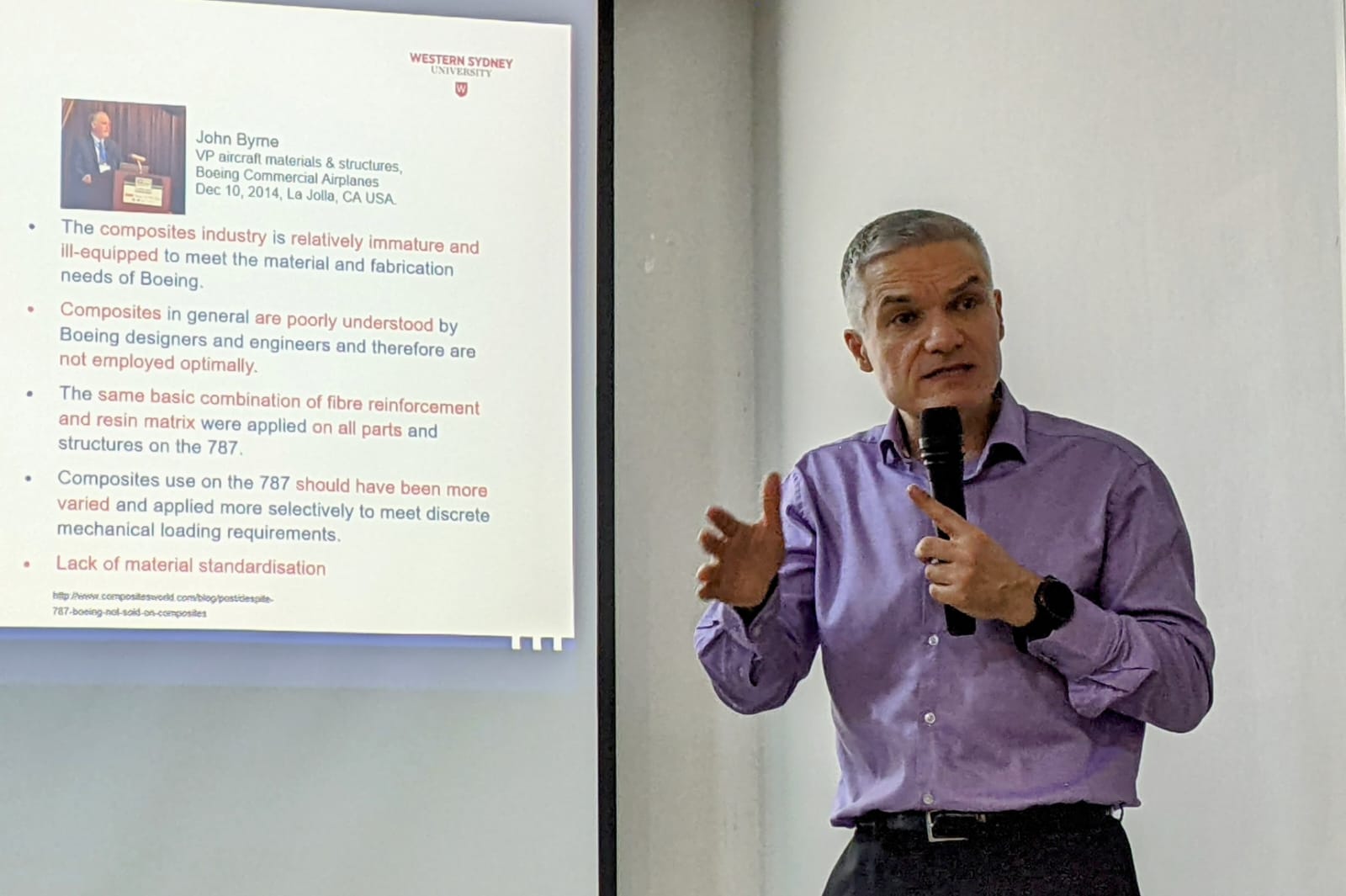 Kegiatan ini menghadirkan Profesor Brian G Falzon yang merupakan Dekan Fakultas Teknik, Desain, dan Lingkungan Bangunan Western Sydney University, Australia. Dalam kuliah tamu yang dihadiri mahasiswa serta dosen tersebut, Brian mengungkapkan bahwa penggunaan material logam dalam pembuatan kendaraan yang lebih kuat dan kokoh menyebabkan bobot kendaraan semakin bertambah berat.