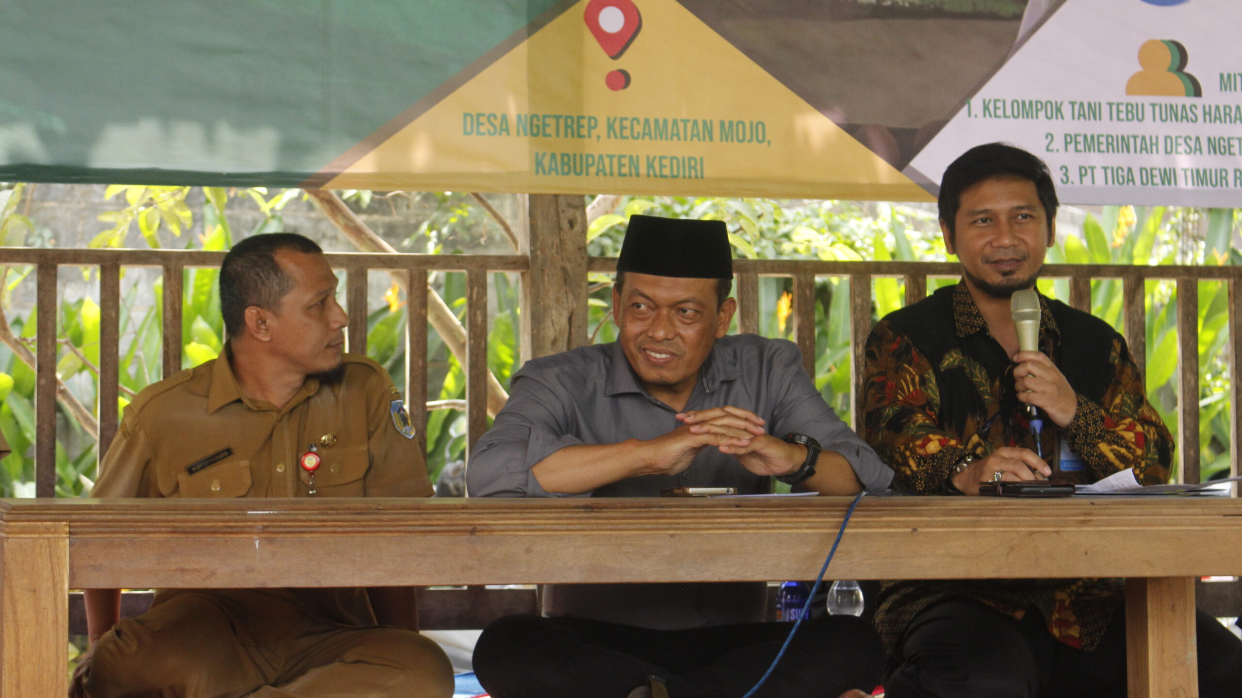 Tim KKN ITS bersama Tim KKN UNISKA, Dispertabun Kabupaten Kediri, Perangkat Desa Ngetrep, kelompok tani tebu, dan pengrajin gula merah Desa Ngetrep, Kecamatan Mojo, Kabupaten Kediri