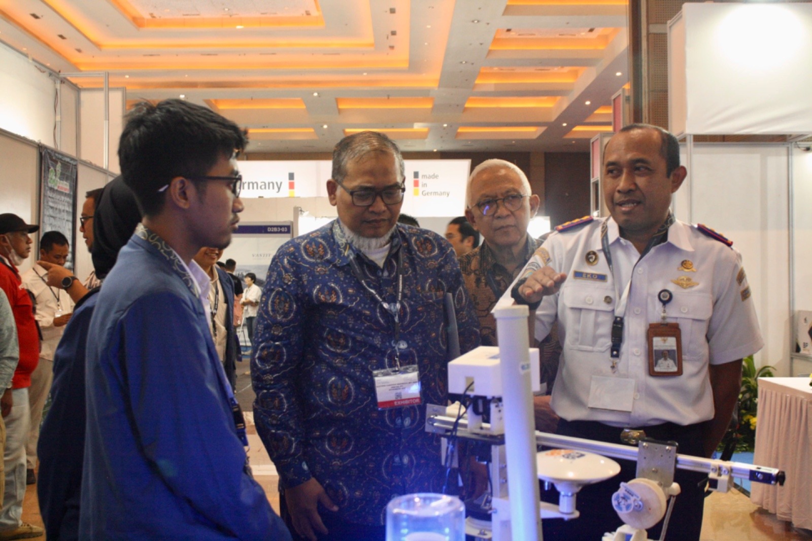 Kepala Balai Teknologi Keselamatan Pelayaran Eko Sudarmanto M Pd M Mar E (kanan) saat mengunjungi booth Tim Barunastra ITS