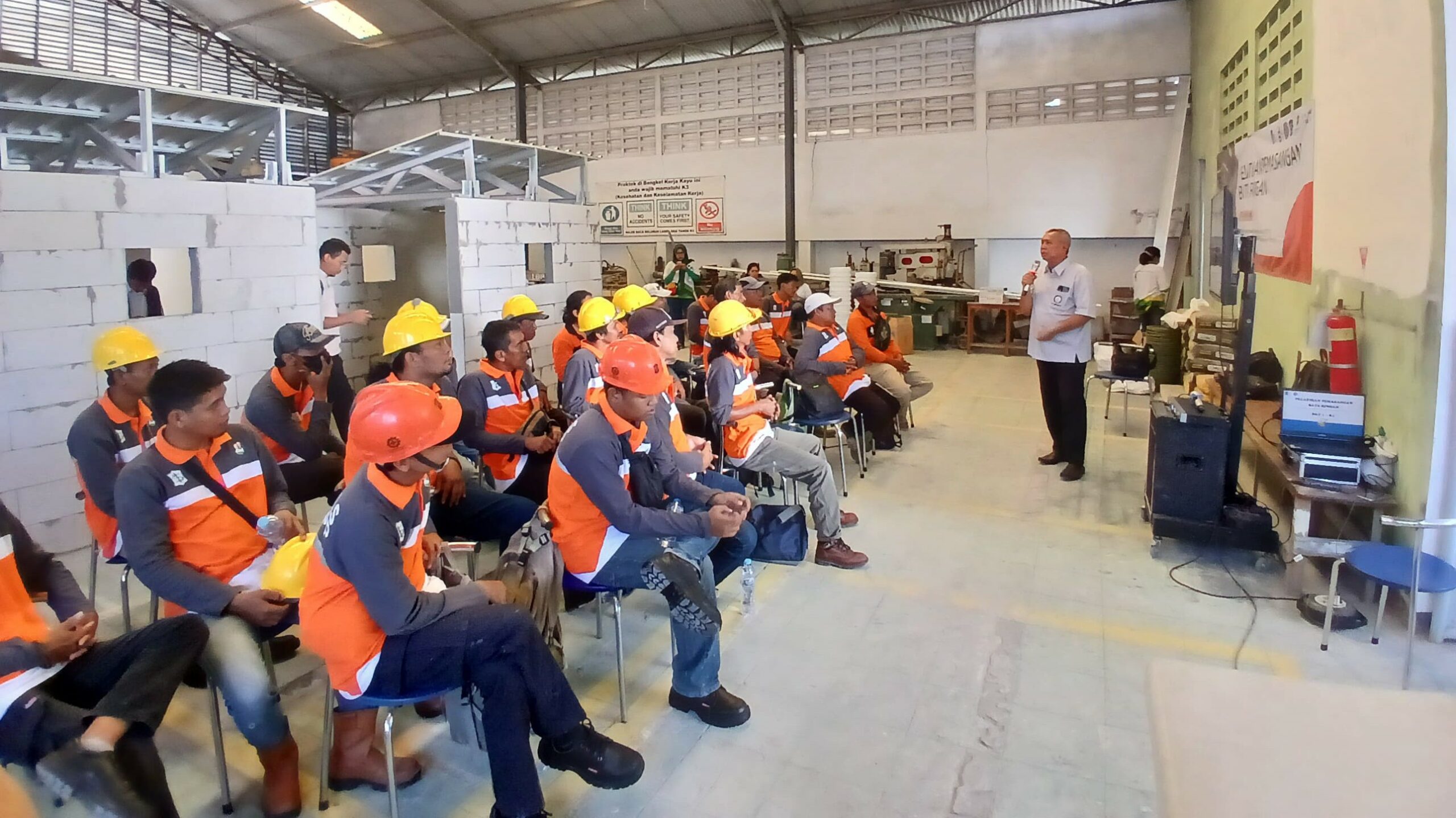 Satgas DPRKPP Kota Surabaya ketika mengikuti sesi materi Pelatihan Pemasangan Bata Ringan dengan pemateri dari CITICON