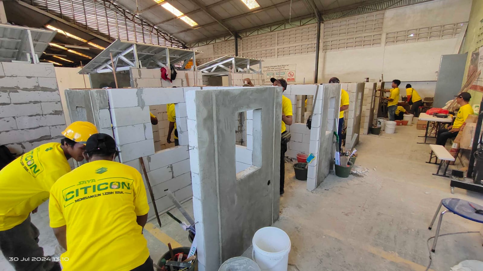 Lebih lanjut, Khoiri menjelaskan keterampilan pemasangan material bata ringan sebagai komponen utama penyusun dinding rumah menjadi fokus pelatihan kali ini. Pemilihan penggunaan bata ringan didasari oleh sejumlah keunggulannya, seperti pemasangan lebih mudah, ukuran lebih presisi, serta lebih kedap panas dan suara.