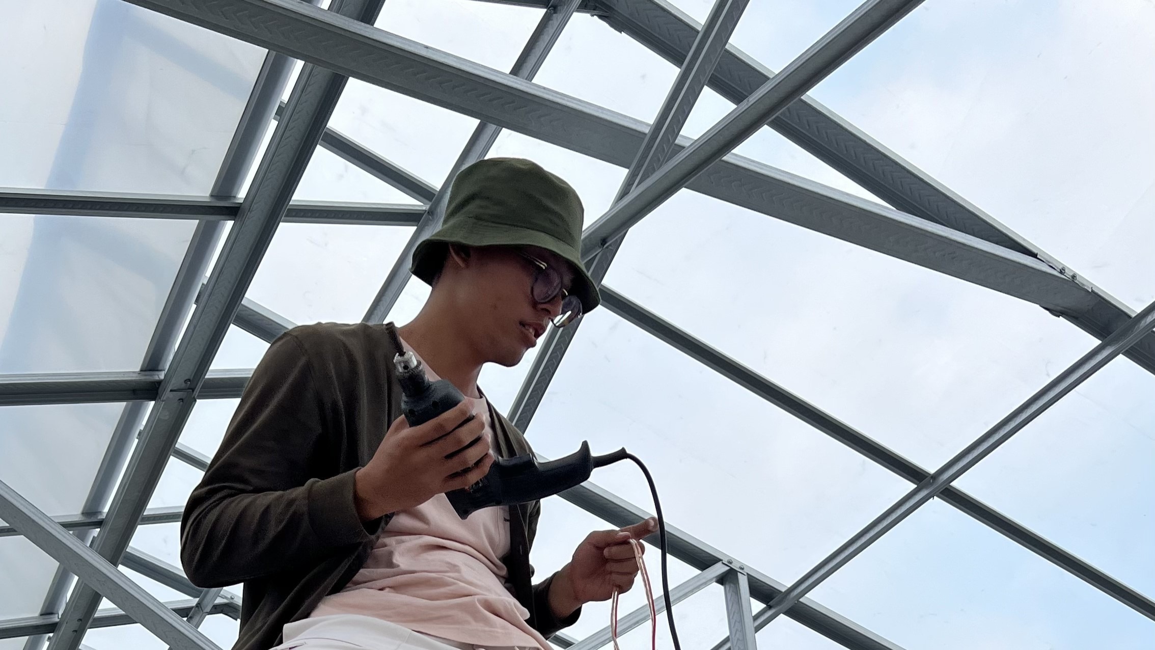 Tim KKN Abmas DTK ITS saat sedang melakukan pemasangan lampu di green house