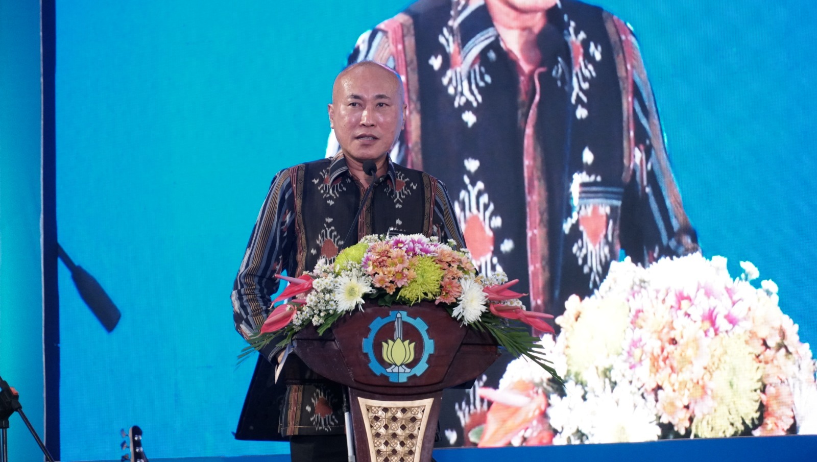 Keynote Speaker, Rektor ITS Ir Bambang Pramujati ST MSc Eng PhD IPU Aeng saat memperkemalkan jargon Advancing Humanity kepada orang tua & wali mahasiswa baru