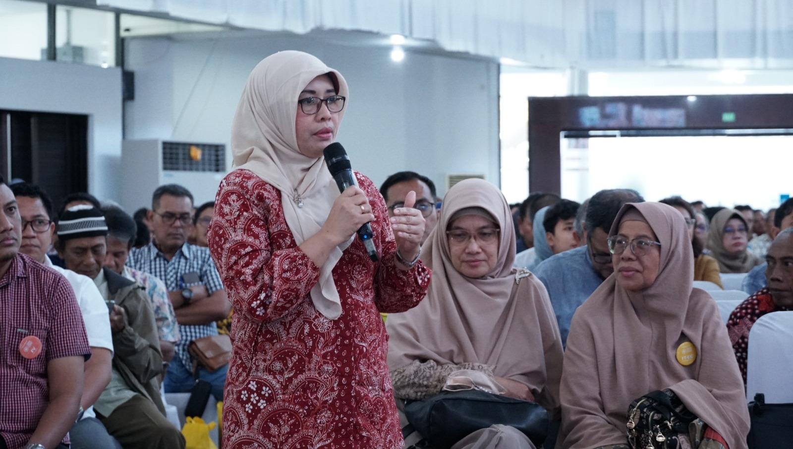 Salah satu orang tua saat bertanya pada kegiatan Pertemuan Orang Tua Maba, Sabtu (10/8)