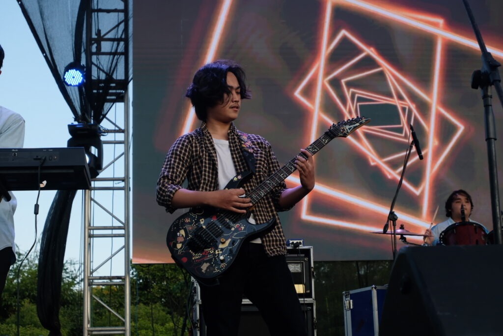 Anggota West District memainkan gitarnya pada kegiatan VOITS FEST 2024, Sabtu (7/9)