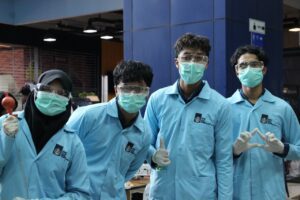 Tim Spektronics ITS saat menunggu giliran untuk chemical preparation pada mobil SP27 buatannya di ajang ECODAYS
