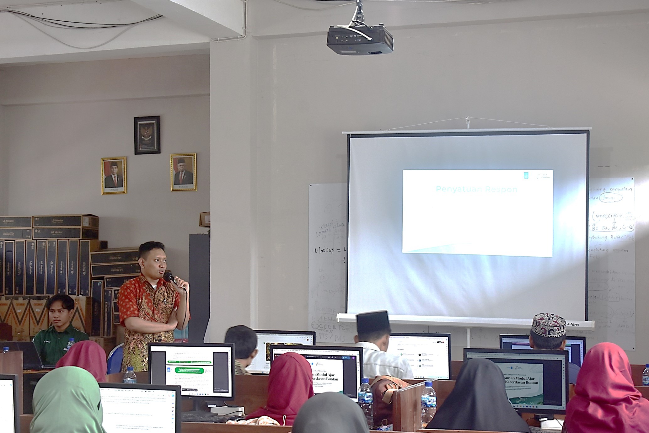 Yurid Eka Nugraha ST MEng PhD menyampaikan materi pelatihan pemanfaatan AI di SMA At Tibyan, Pandaan
