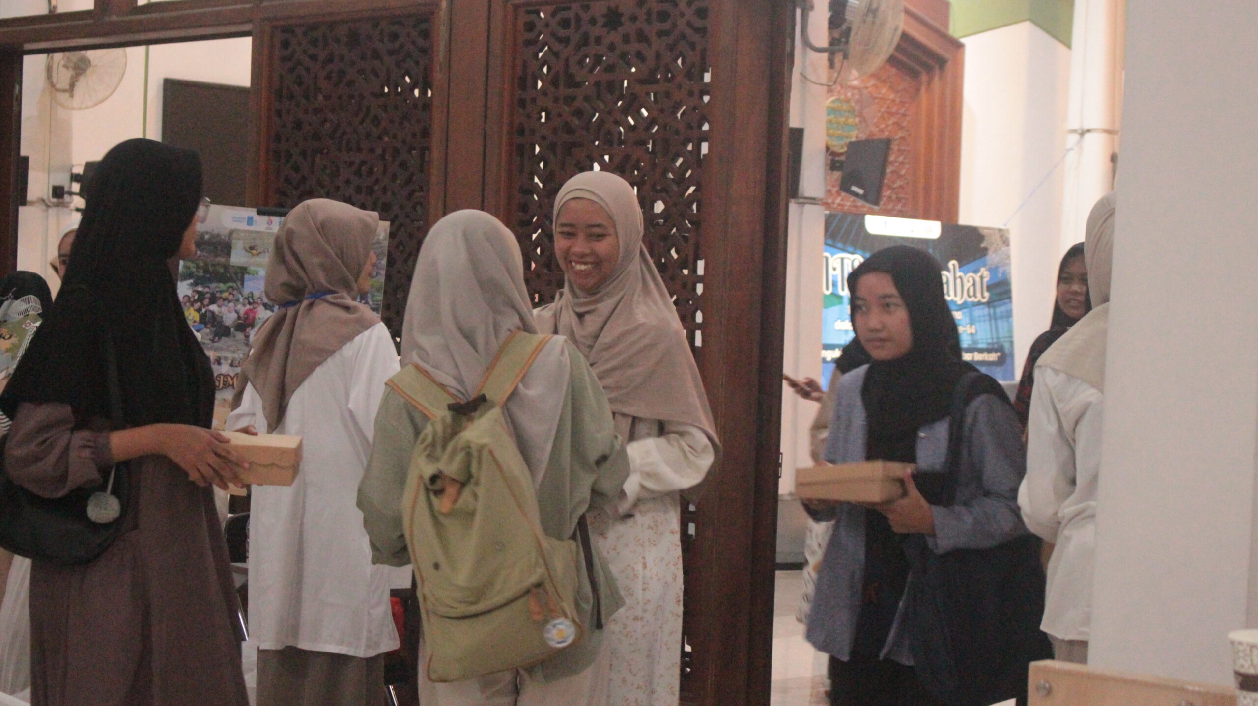 Suasana pembagian seribu makanan gratis oleh panitia ITS Maslahat kepada mahasiswa yang hadir di Masjid Manarul Ilmi ITS