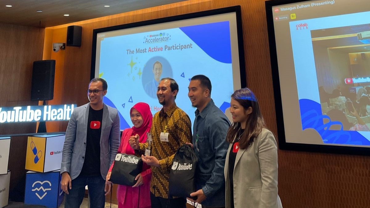 dr Tri Hedianto Sp THT KL (berbaju batik) menerima award The Most Active Participant di Youtube Accelerator Program 2023