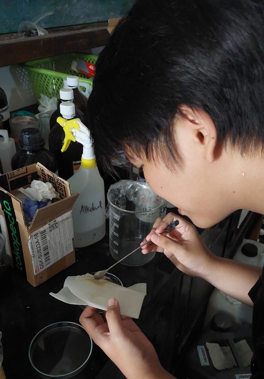 Muhammad ketika melakukan proses fabrikasi membran pada bulu bebek