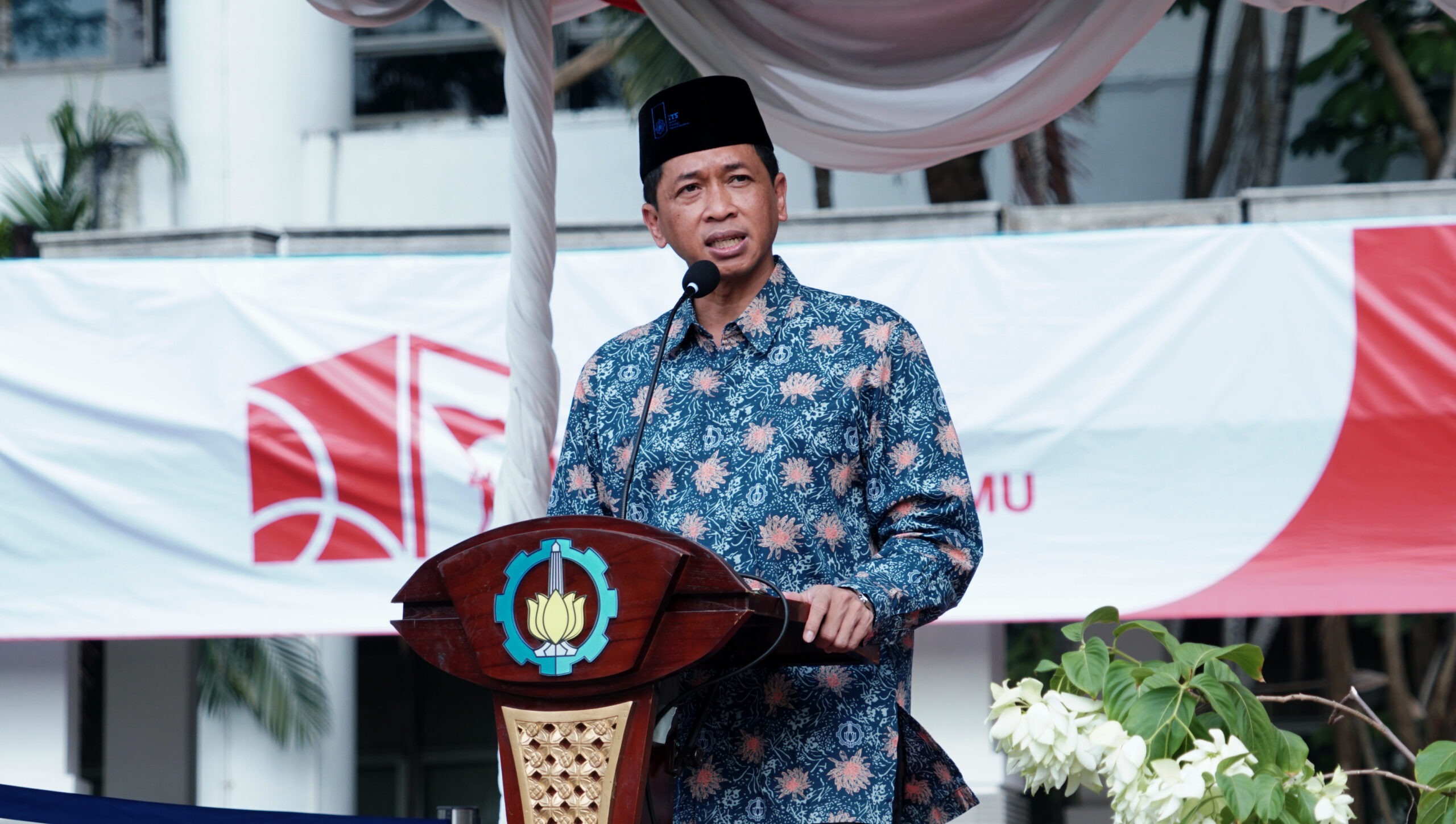 Rektor ITS Bambang Pramujati saat memberikan amanat upacara Hari Pahlawan, Minggu (10/11)