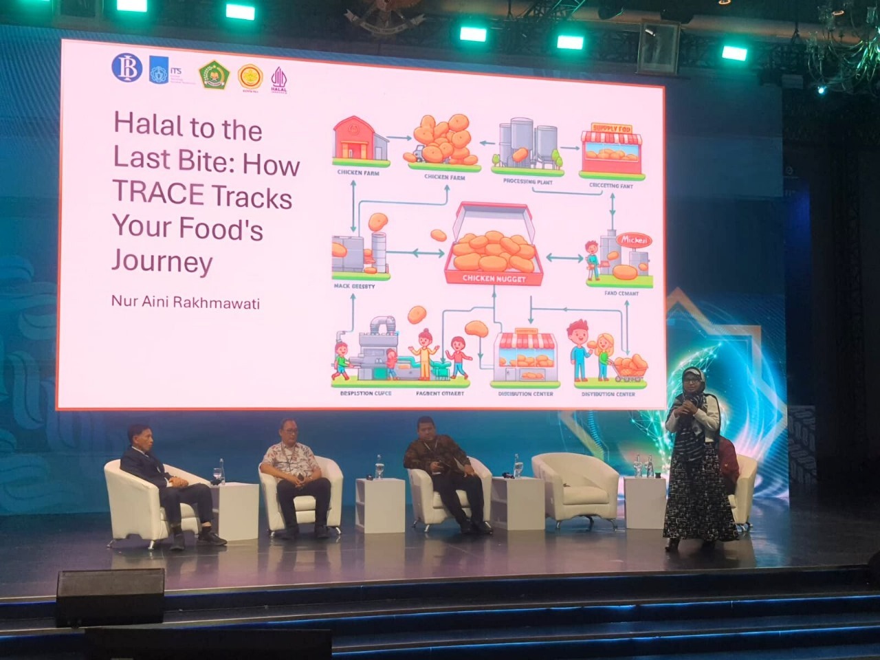 Ketua tim TRACE ITS Prof Nur Aini Rakhmawati SKom MSc Eng PhD (berdiri) saat mempresentasikan inovasi TRACE di The 6th Indonesia International Halal Lifestyle Conference (INHALE) 2024