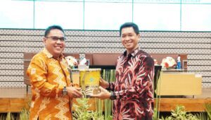 Penyerahan plakat oleh Kepala Balai Penelitian dan Pengembangan Agama Kemenag Semarang H Moch Muhaemin SAg MM (kiri) kepada Rektor ITS Prof Ir Bambang Pramujati ST MSc Eng PhD