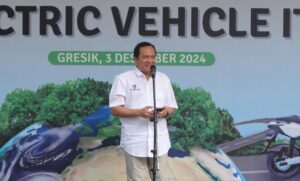 Wakil Rektor IV ITS Prof Agus Muhammad Hatta ST MSi PhD saat memberikan sambutan pada acara serah terima EVITS dari ITS ke PT Petrokimia Gresik