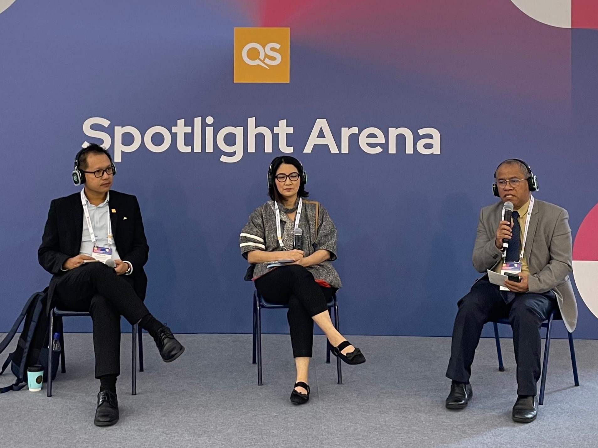 Wakil Rektor III ITS Imam Baihaqi ST MSc PhD (kanan) ketika menyampaikan mengenai peluang studi dari pendidikan tinggi di Indonesia pada QS Higher Ed Summit Asia Pacific 2024
