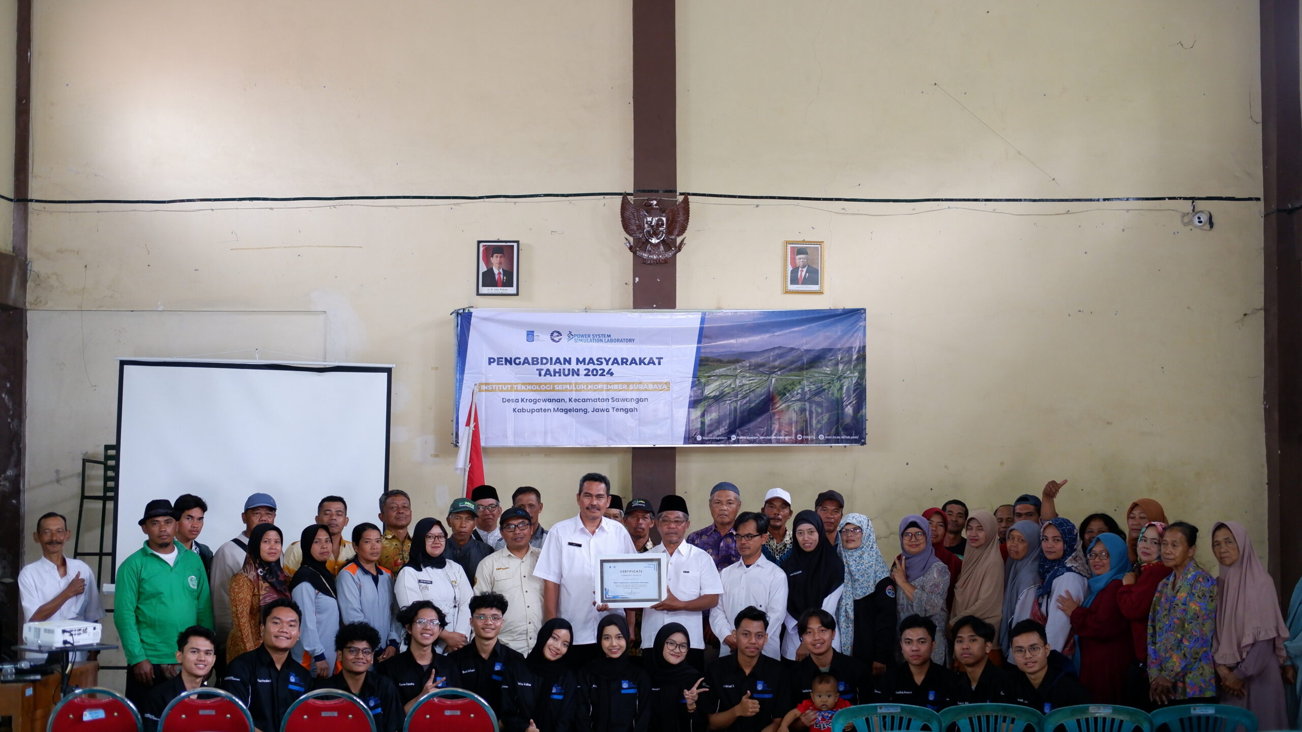 Foto bersama dosen dan mahasiswa Departemen Teknik Elektro ITS dengan para petani di Desa Krogowanan, Magelang