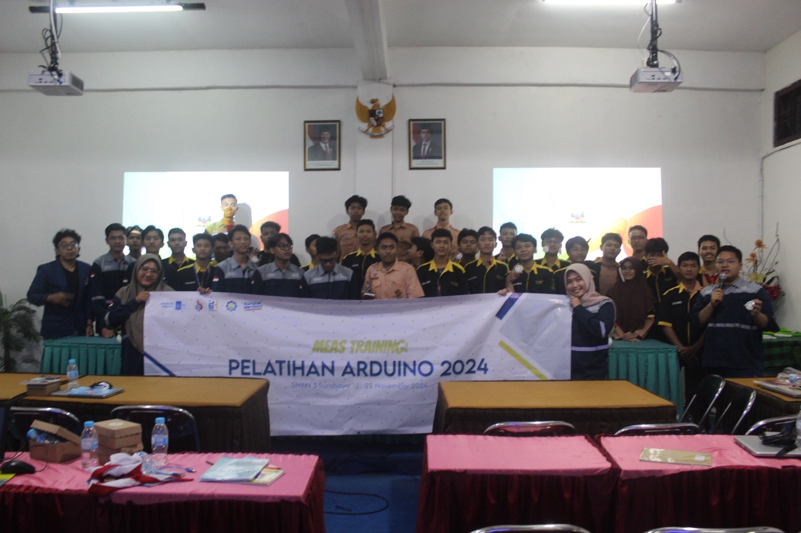 Mahasiswa ITS bersama dengan Siswa SMKN 3 Surabaya dalam kegiatan kkn abmas pelatihan Arduino