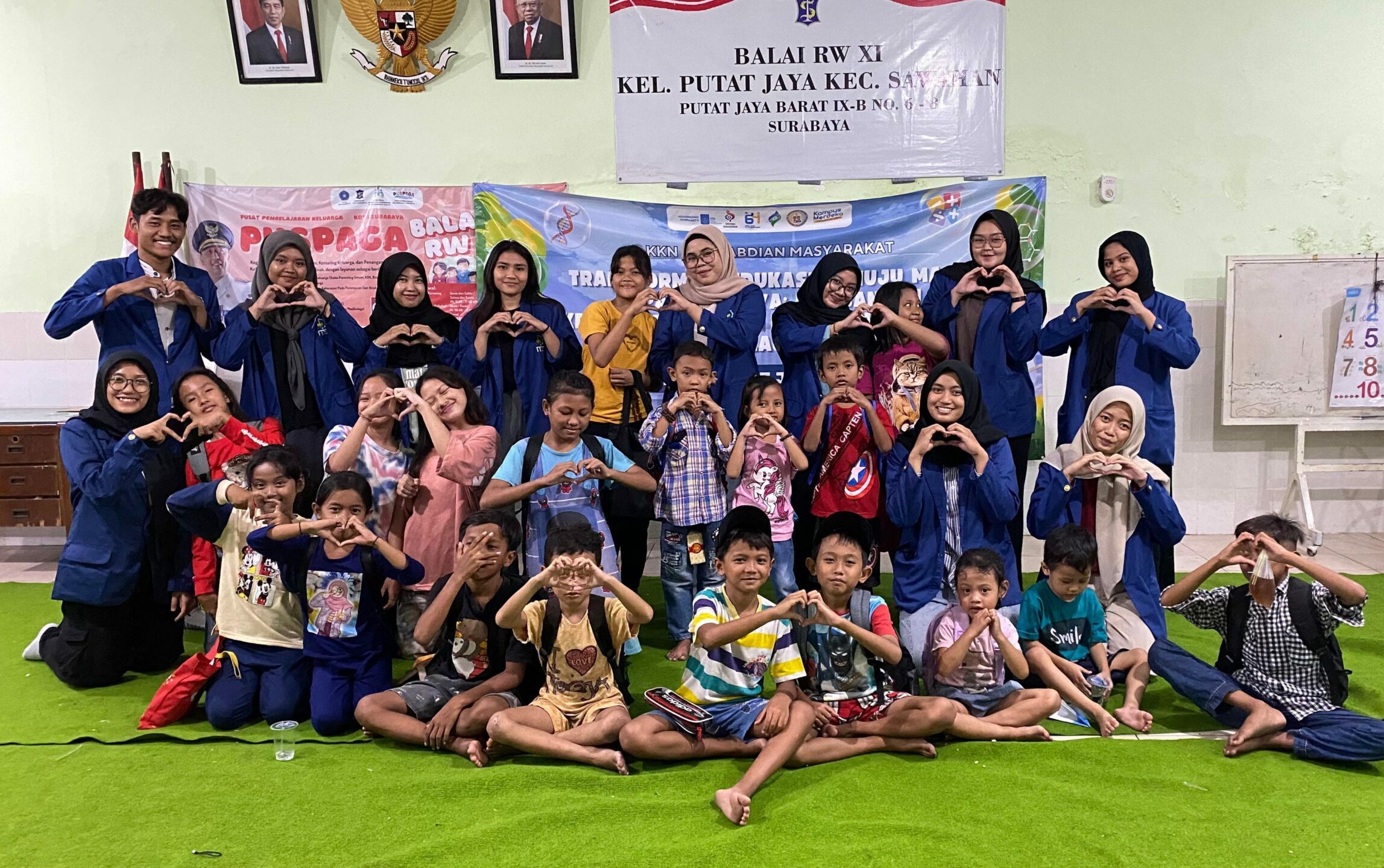Anak-anak di Kelurahan Putat Jaya, Kota Surabaya bersama dengan mahasiswa FSAD ITS saat mengikuti program KARCIS