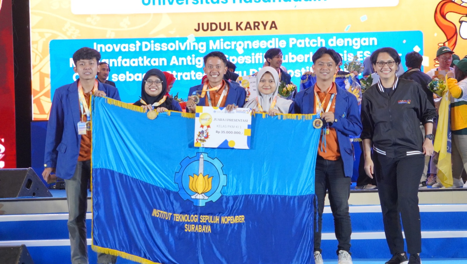 Tim Insgluni ketika menerima medali emas pada kategori PKM-KI subkategori Presentasi pada ajang Pimnas 2024