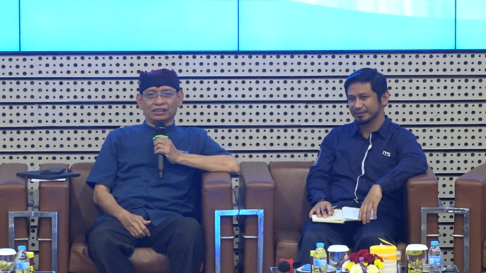 Rektor Universitas Airlangga Prof Dr Mohammad Nasih SE MT Ak (kiri) memberikan materinya bersama Direktur Riset dan Pengabdian kepada Masyarakat (DRPM) ITS Fadlilatul Taufany ST PhD sebagai moderator