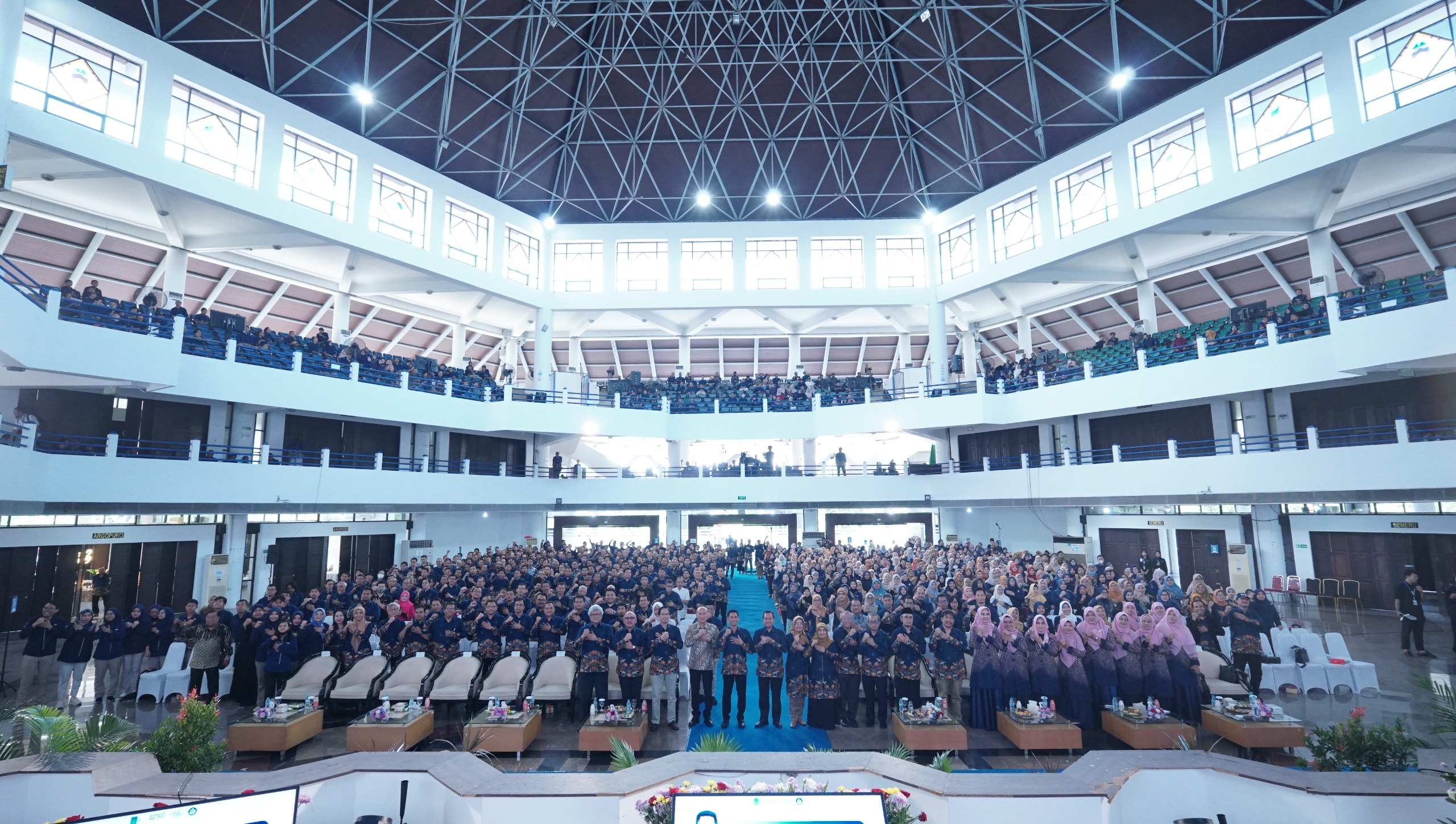 Momen kebersamaan para sivitas ITS setelah Pidato Rektor Awal Tahun 2025 di Graha Sepuluh Nopember ITS