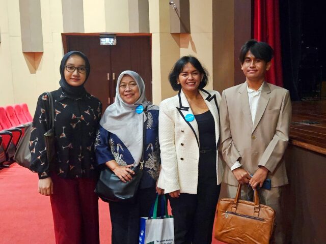 (Dari kiri) Khairunnisa Rahmahdani Danang, Child Protection Specialist at UNICEF Naning Julianingsih, Education Officer at UNICEF Yuanita Nagel, dan Aldiez Rizkia Centrinova setelah opening ceremony di Ciputra Hall, Citraland, Surabaya.