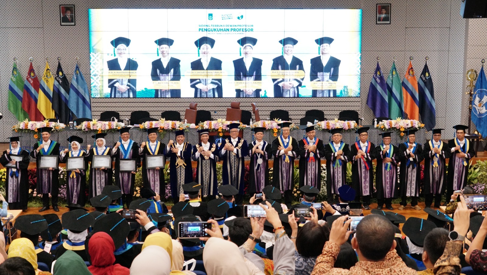 Kampus ITS, ITS News — Institut Teknologi Sepuluh Nopember (ITS) kembali menegaskan komitmennya dalam mendorong riset unggulan dan inovasi akademik dengan mengukuhkan enam profesor baru. Pengukuhan ini secara nyata memperkuat peran ITS sebagai institusi pendidikan tinggi yang terus berkontribusi bagi kemajuan ilmu pengetahuan dan teknologi. Pengukuhan untuk ketiga kalinya di awal tahun ini berlangsung di Auditorium Research Center ITS, Kamis (20/2).
