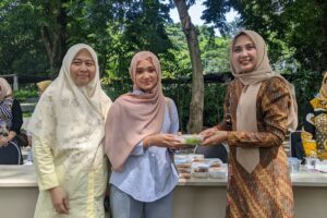 (kiri) Ketua DWP FTSPK ITS Husna Adjie dan (kanan)istri Rektor ITS Galih Kanestri Dewi saat menyerahkan langsung nasi berkah kepada mahasiswa