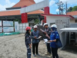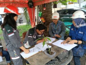 Muhammad Khisamudin (dua dari kiri) saat melakukan koordinasi dengan kontraktor terkait program kompensasi tanam pohon pada proyek Tower 3 ITS