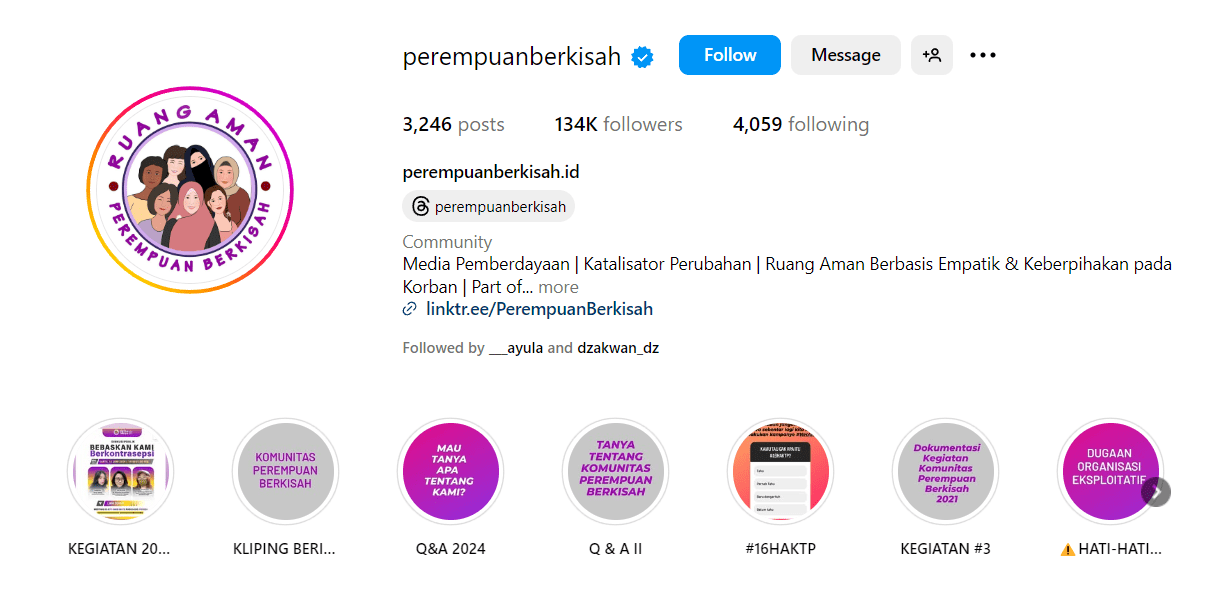 Akun @perempuanberkisah sebagai representatif wadah yang menyuarakan peran dan hak perempuan