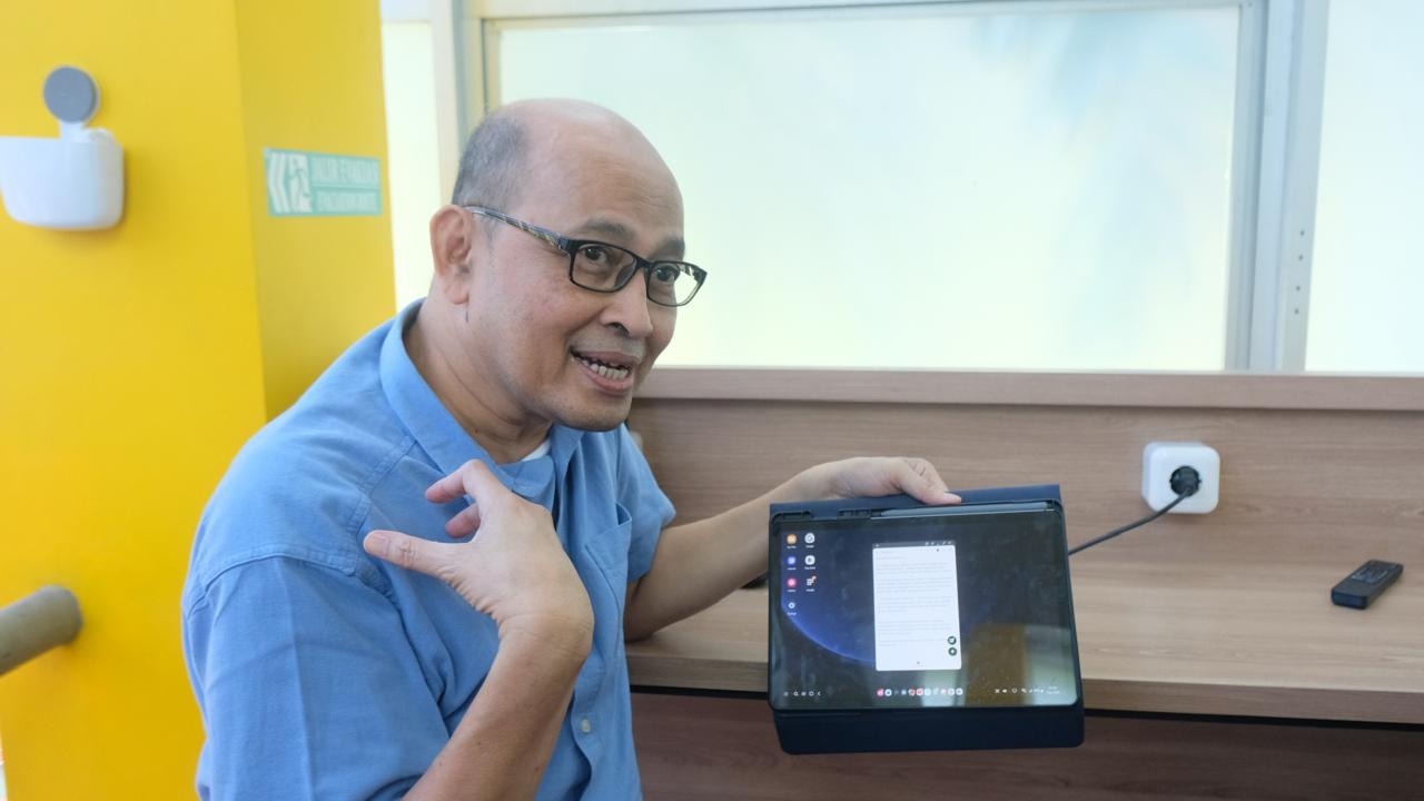 Ir Achmad Holil Noor Ali MKom menjelaskan cara kerja dari aplikasi MeccaBot AI rancangannya bersama tim