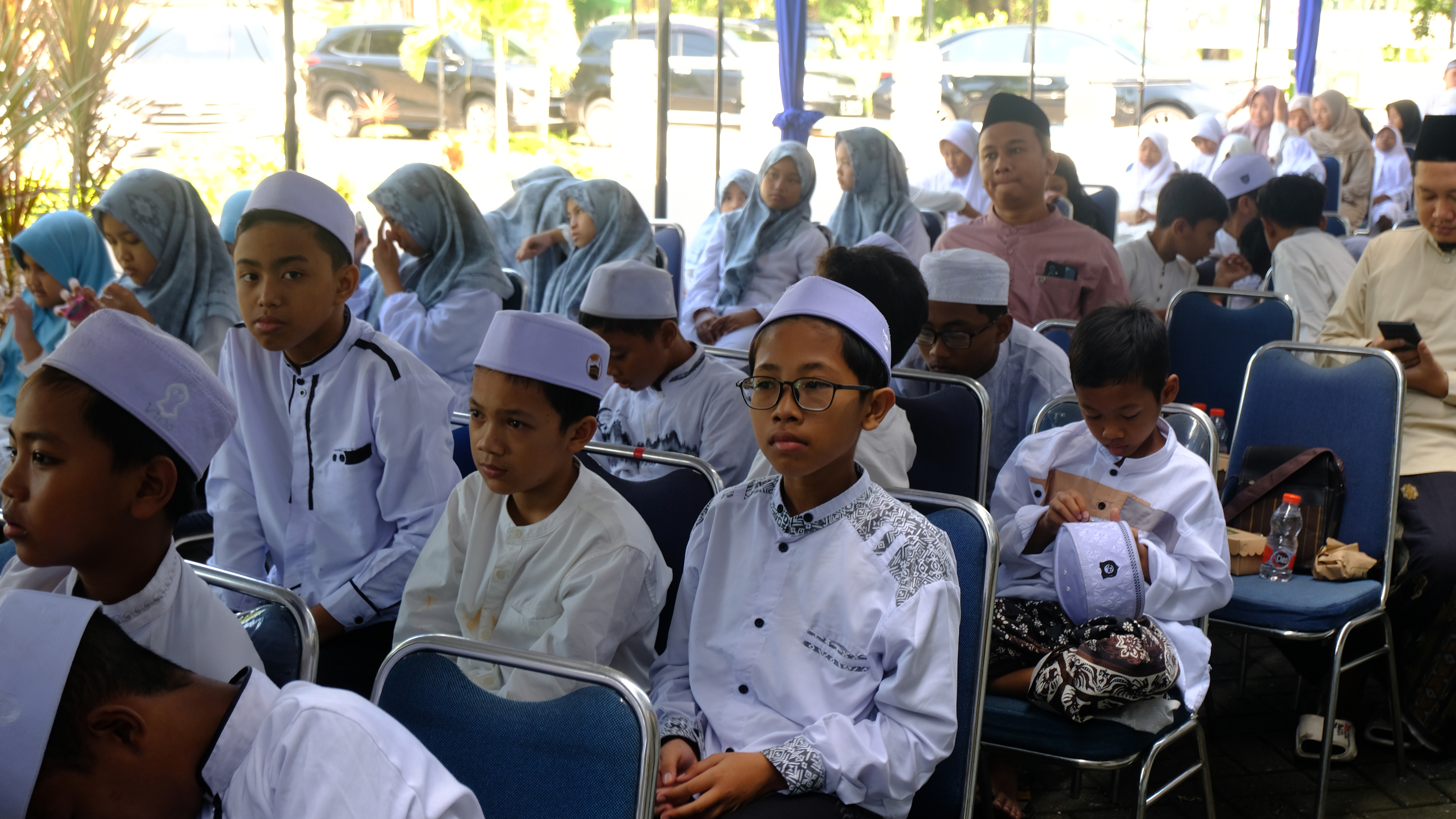 Anak-anak peserta kegiatan Edukasi dan Skrining Kesehatan Gigi dan Mulut ketika memperhatikan edukasi yang tengah diberikan