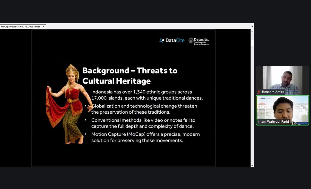 Ketua Tim Peneliti ITS Imam Wahyudi Farid saat diundang DataCite dalam seminar pemaparan penelitian mocup tari tradisional kepada para peneliti global secara daring