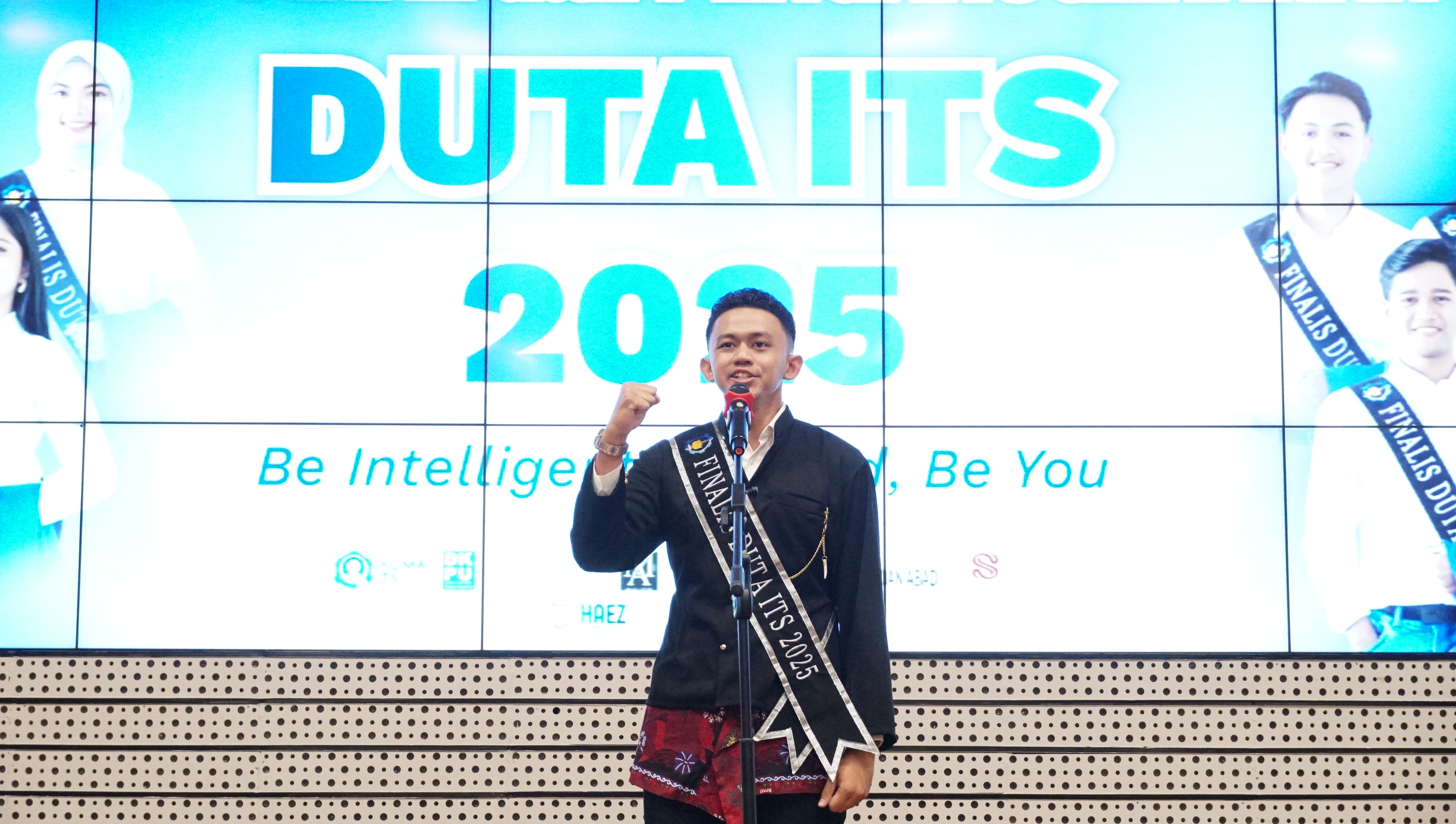 Hilmy Alfadel Nurindaputra dan Nanda Dewi Challista (tengah) saat penganugerahan hadiah setelah resmi menyandang gelar Duta ITS 2025