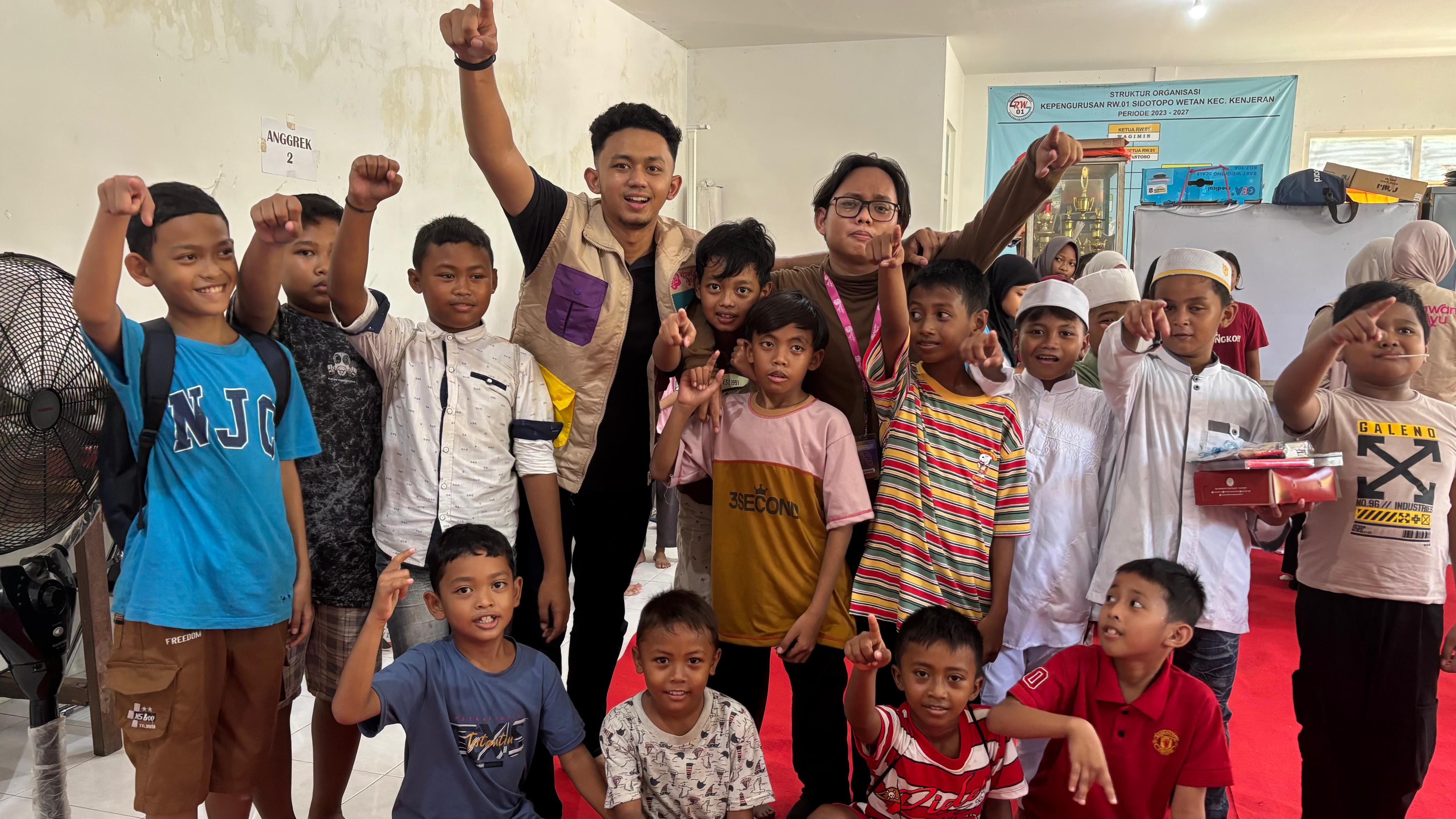 Hilmy Alfadel Nurindaputra bersama komunitas Kawan Ayu saat mengajar di salah satu desa di Kota Surabaya