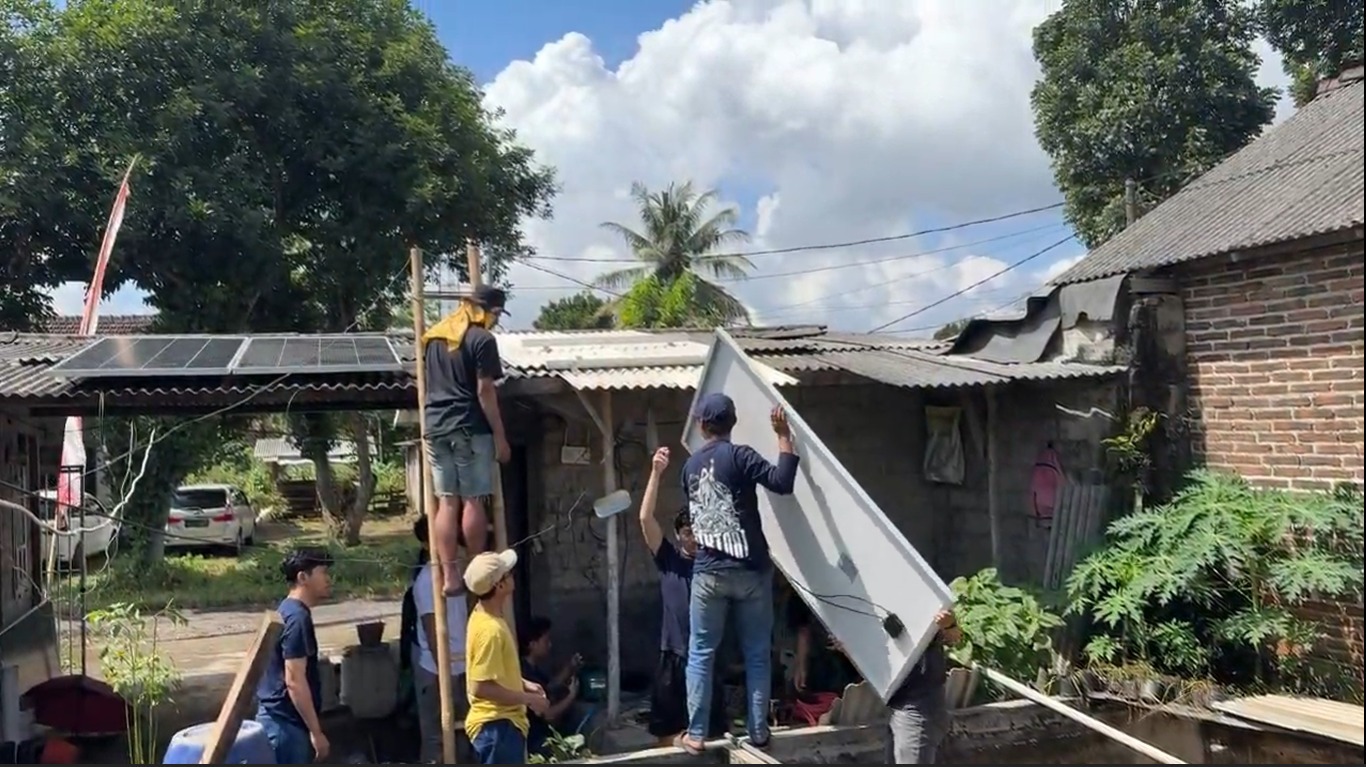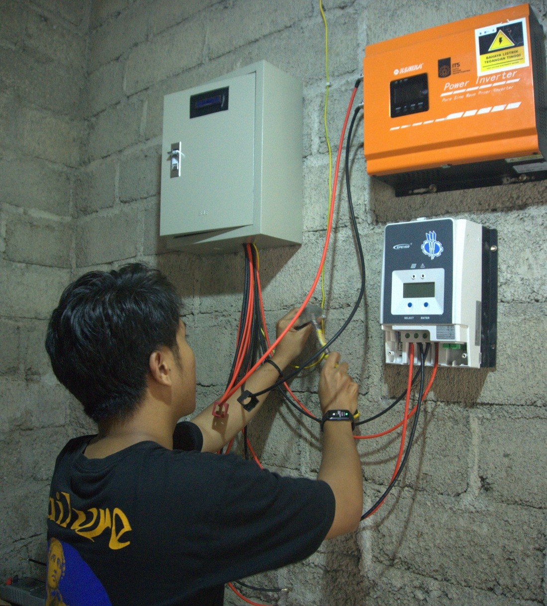 Pemasangan solar panel oleh tim abmas LIPIST ITS
