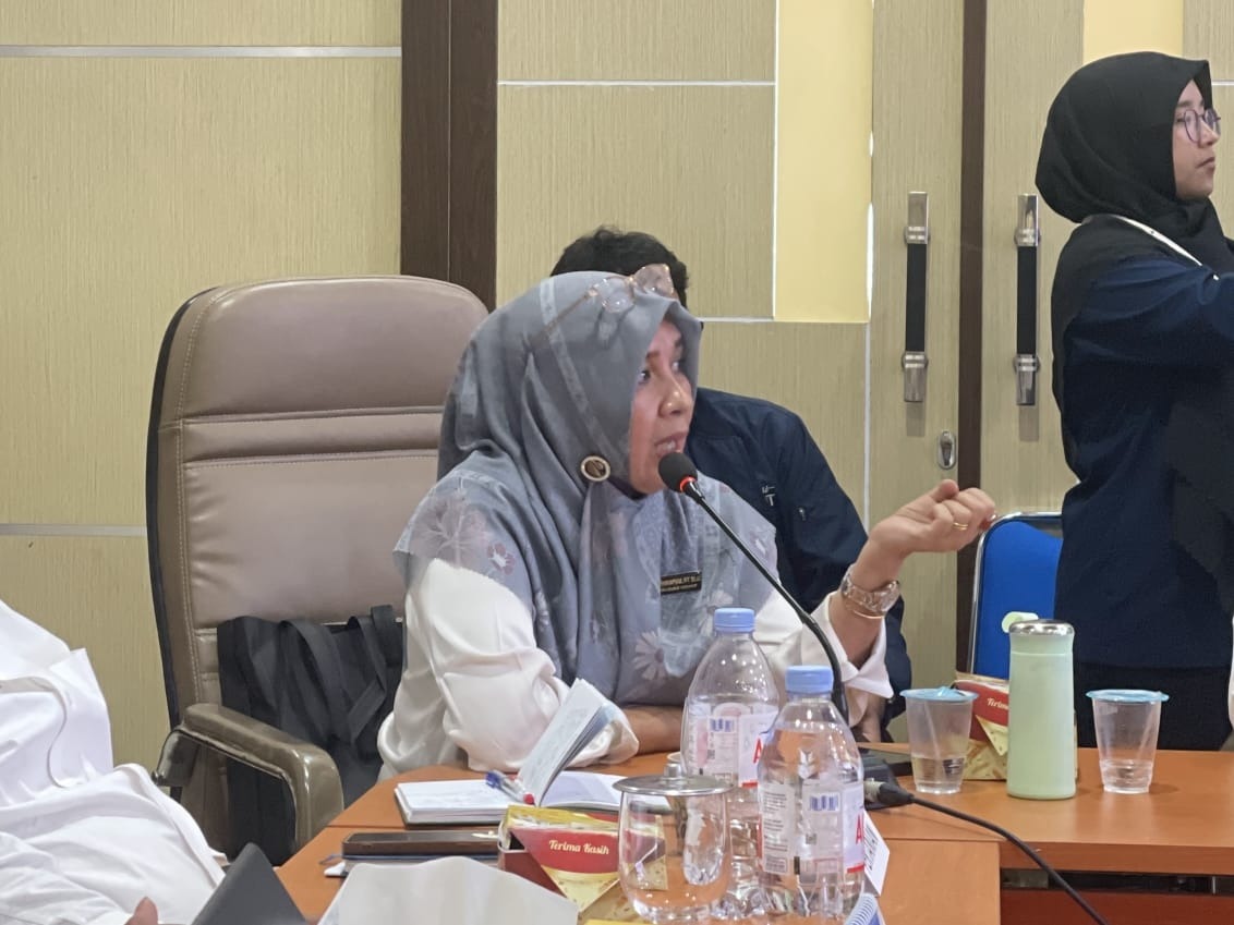 Perwakilan Bappeda Aceh Besar Susi Sunanya SSi MSi saat menanggapi hasil temuan Tim Ekspedisi Patriot ITS dan keluhan warga Mukim Lampanah, Kecamatan Seulimeum, Aceh Besar