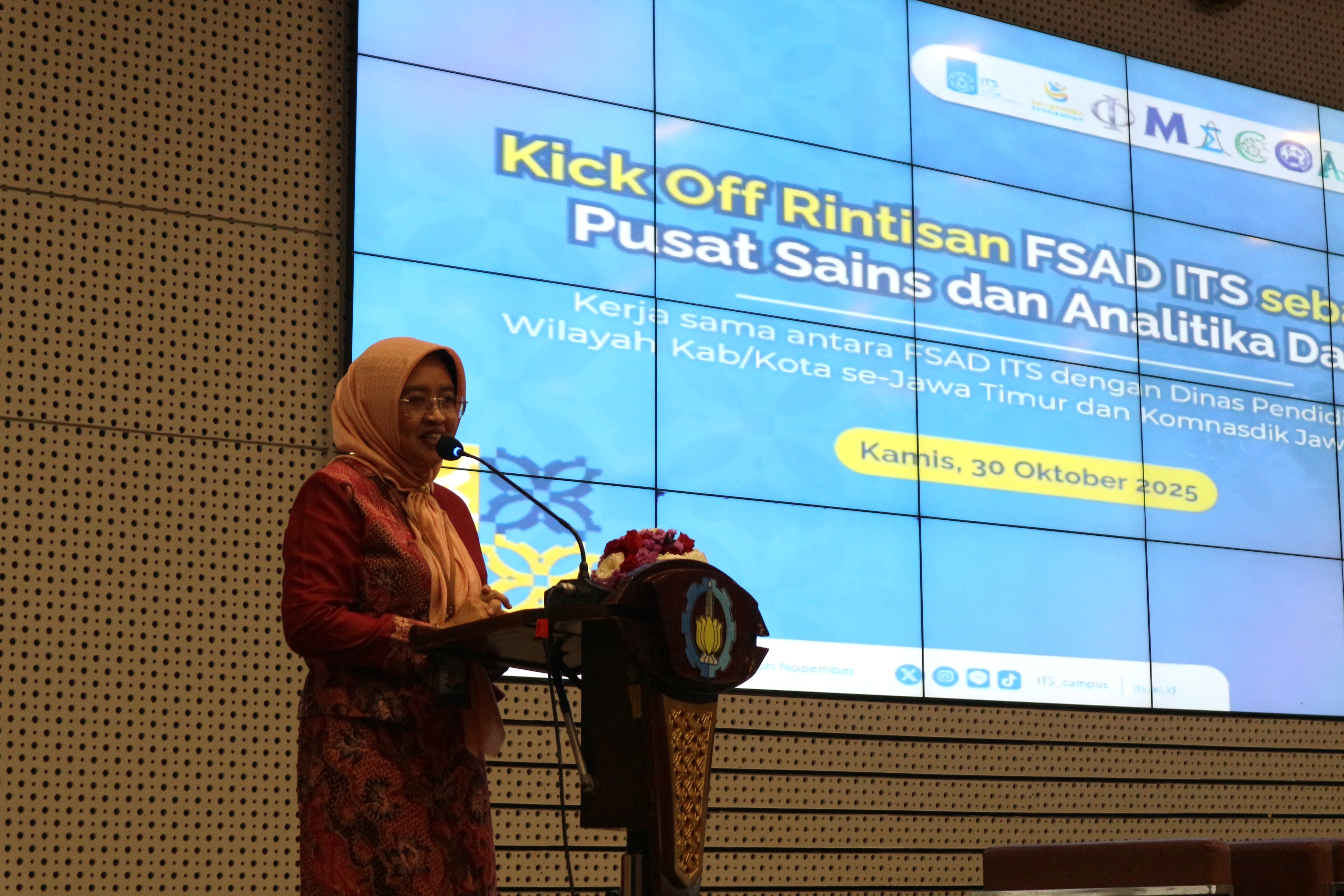 Kampus ITS – ITS News, Institut Teknologi Sepuluh Nopember (ITS) melalui Fakultas Sains dan Analitika Data (FSAD) resmi memulai langkah besar menuju penguatan perannya sebagai pusat pengembangan keilmuan dan riset berbasis data di Indonesia. Hal tersebut ditandai dengan terselenggaranya Kick Off Rintisan FSAD ITS sebagai Pusat Sains dan Analitika Data, Kamis (30/10), yang menggandeng Dinas Pendidikan Wilayah Kabupaten/Kota se-Jawa Timur dan Komnasdik Jawa Timur.