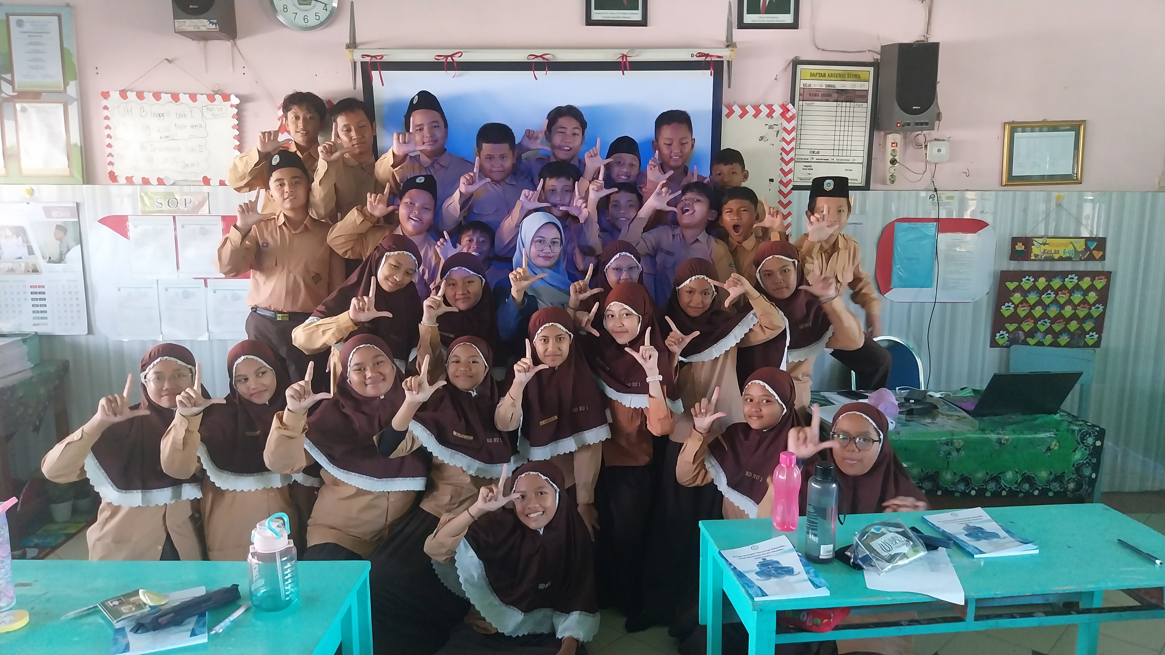 Kegiatan pembelajaran di kelas oleh Tim Abmas Departemen Teknik Kelautan ITS sebagai guru tamu bersama siswa-siswi SD Nahdlatul Ulama 1 Trate, Gresik