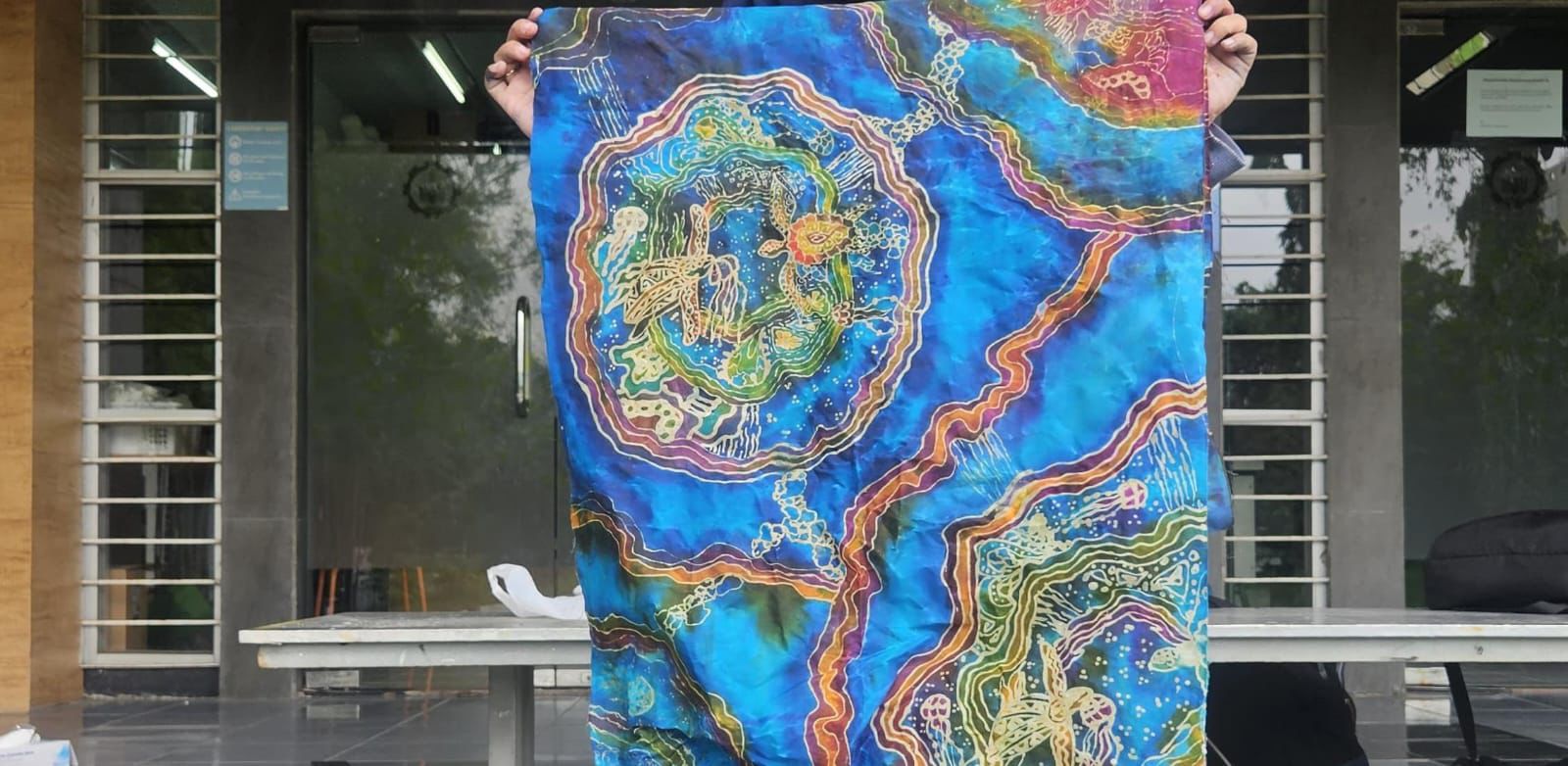 Kain batik rancangan Tim Abmas Despro ITS yang diolah kembali menjadi beberapa produk suvenir yang bisa dijual ke pengunjung Konservasi Penyu Segoro Lestari, Blitar