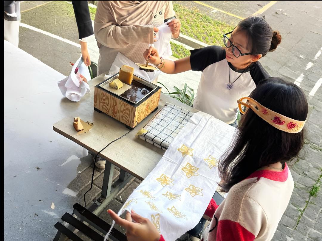 Alumnus Institut Teknologi Bandung (ITB) ini menuturkan bahwa timnya juga menyelenggarakan workshop untuk membuat batik cap dari bahan seadanya. Bahan yang digunakan seperti kertas bekas yang dibuat cetakan batik cap dan kain yang menjadi batik itu akan dijadikan suvenir. “Workshop yang kami adakan di sana mengajarkan cara membuat batik dari bahan seadanya dan akan menjadi suvenir untuk dibawa pulang,” tuturnya.