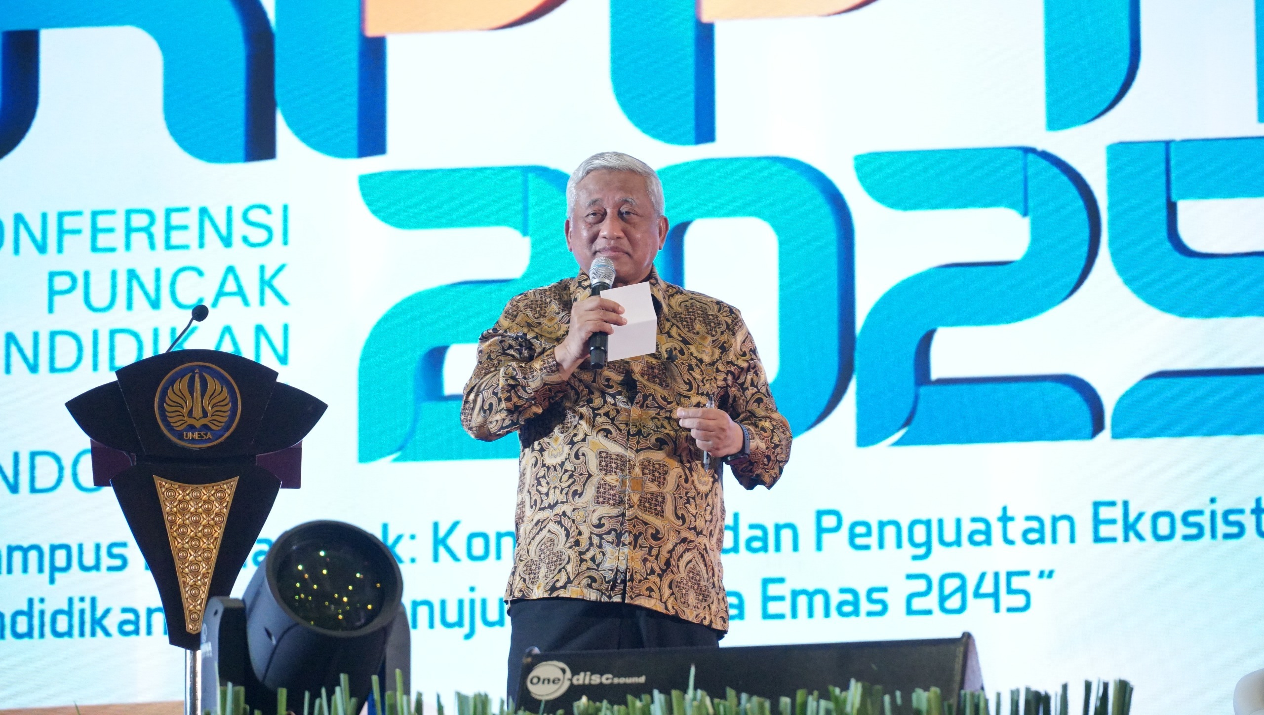 Dirjen Diktisaintek Prof Dr Khairul Munadi ST memberikan sambutannya dalam kegiatan Konferensi Puncak Pendidikan Tinggi 2025