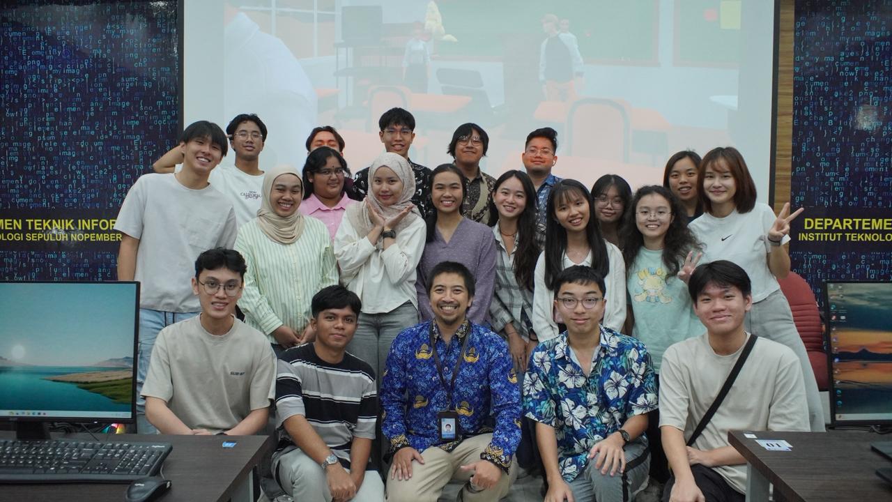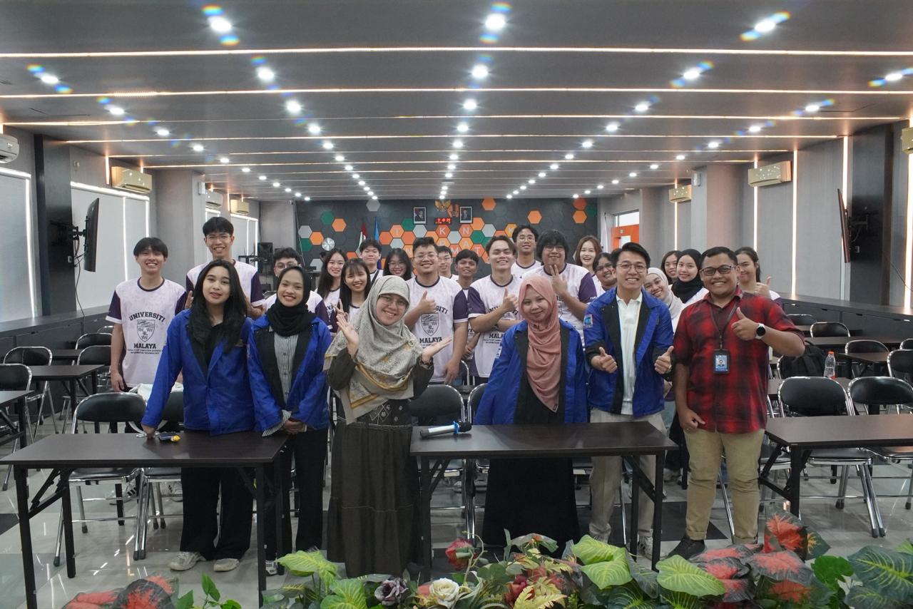 Momen kebersamaan antara tim dosen dan mahasiswa Departemen Teknik Informatika ITS dengan peserta dari Universiti Malaya di acara ITS x UM Mobility Program di Kampus ITS