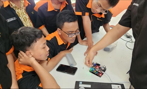 Siswa SMKN 3 Surabaya saat praktik modul PLC dan IoT