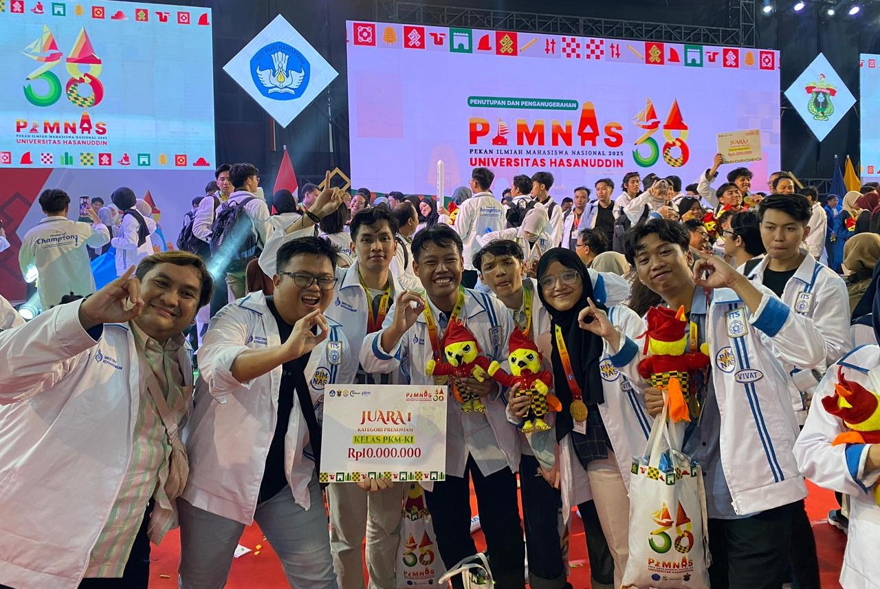 Achmad Mahendra (empat dari kiri) bersama tim saat sukses menjuarai Pimnas 2025 di Unhas Makassar melalui inovasi Osmoinc