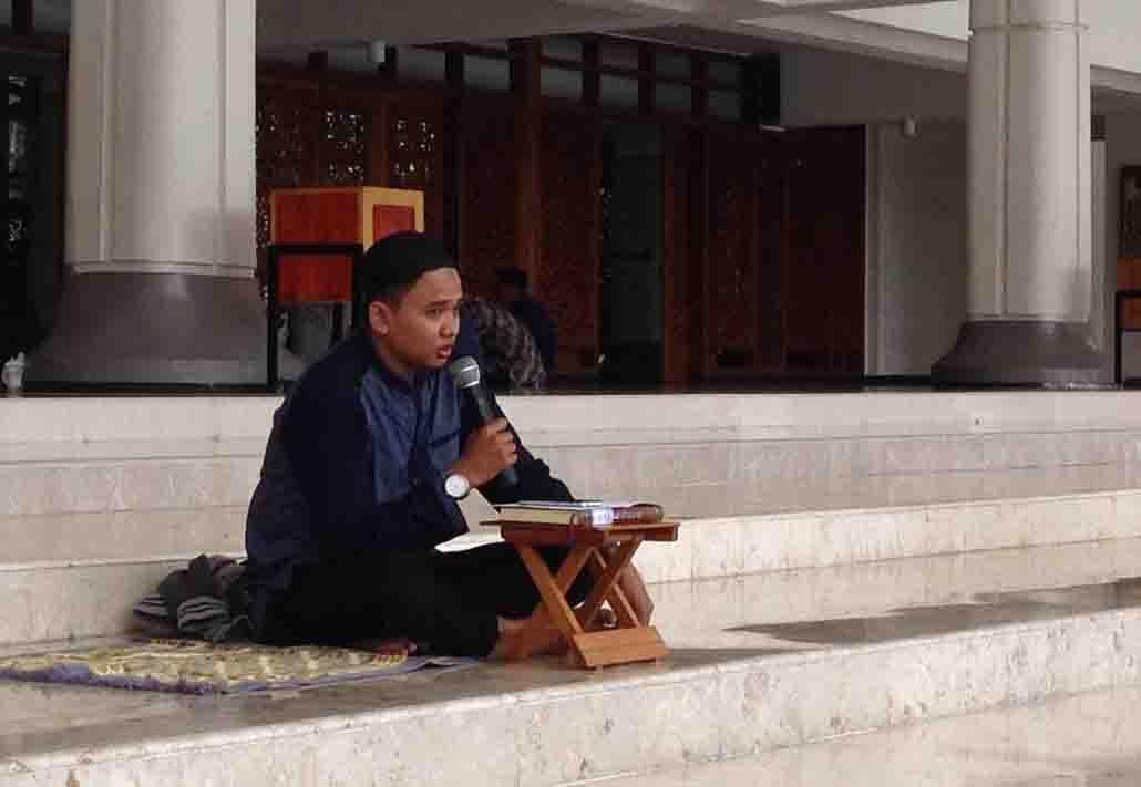 Kumpulan mahasiswa ITS duduk di depan serambi timur Masjid Manarul Ilmi, Senin (7/11). Sebuah ceramah yang bertajuk Untukmu, Separuh Agamaku yang dibawakan oleh Ustadz Gemma Ilhami mampu memberikan pengetahuan kepada mahasiswa tentang bagaimana memilih calon pendamping yang baik.